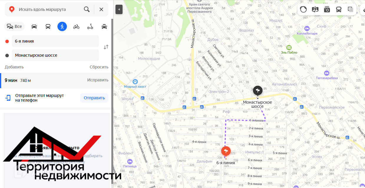Участок находится в активно застраивающемся развитом районе города, вдали от городской суеты, но, при этом, с необходимой для жизни инфраструктурой. До основной дороги - 800 м, где расположена остановка общественного транспорта,супермаркет,кафе и вся необходимая инфраструктура. К участку можно подъехать со Стороны т образного перекрестка.