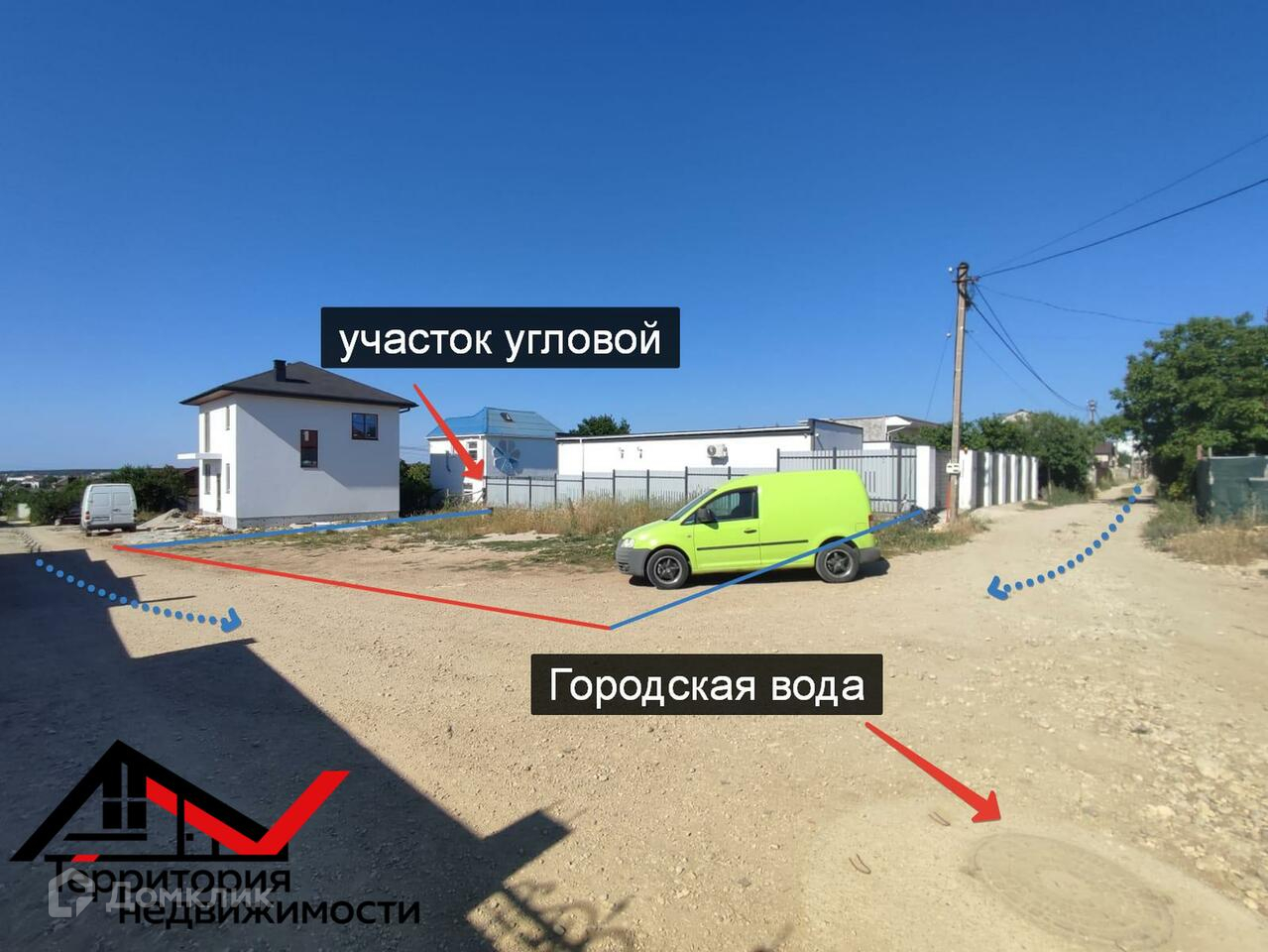 Вода: городская вода , люк на границе участка.