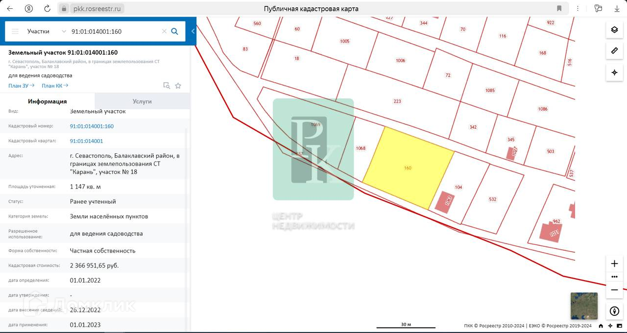 Участок 11,47 соток (СТ) расположен в г. Севастополь, Балаклавский район, ТСН СНТ “Карань”. Участок ровный, правильной формы, без уклона. Подъезд по грунтовой дороге.