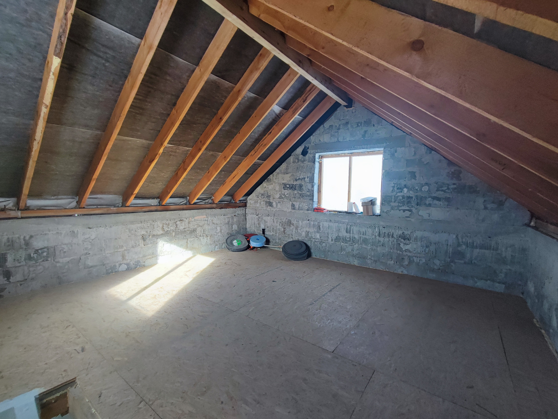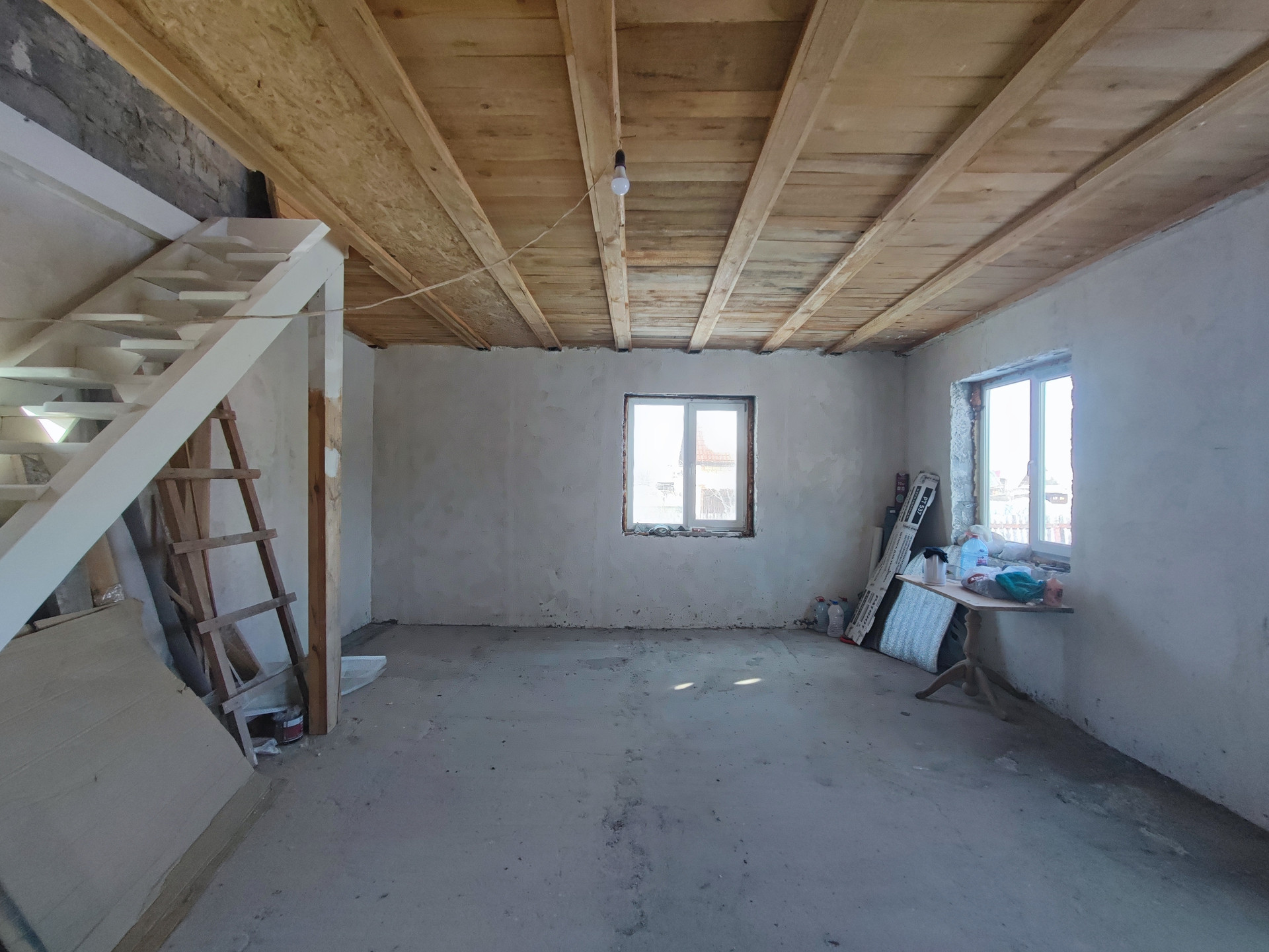 • Дом блочный, площадь 65 кв.м., одна комната на 1 этаже и 1 комната на мансарде.