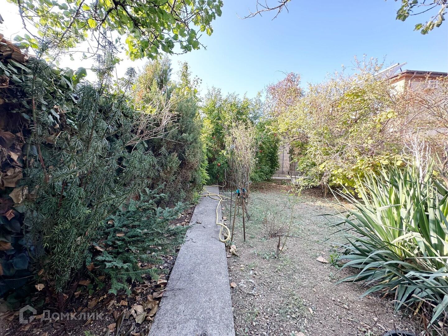 Большой цветущий и плодоносящий сад. Множество хвойных растений для дополнительного уюта и комфорта. Бетонные дорожки на всем участке.