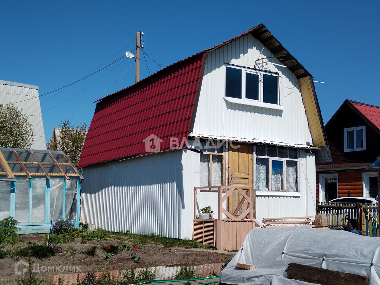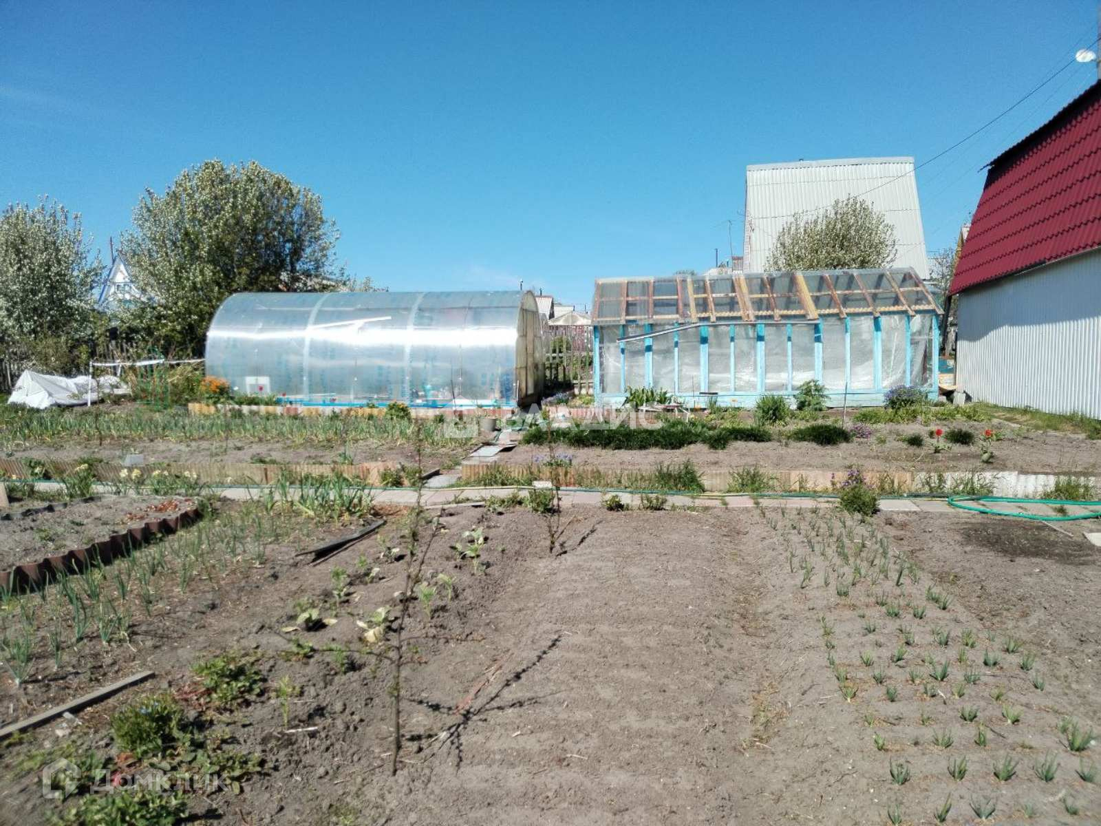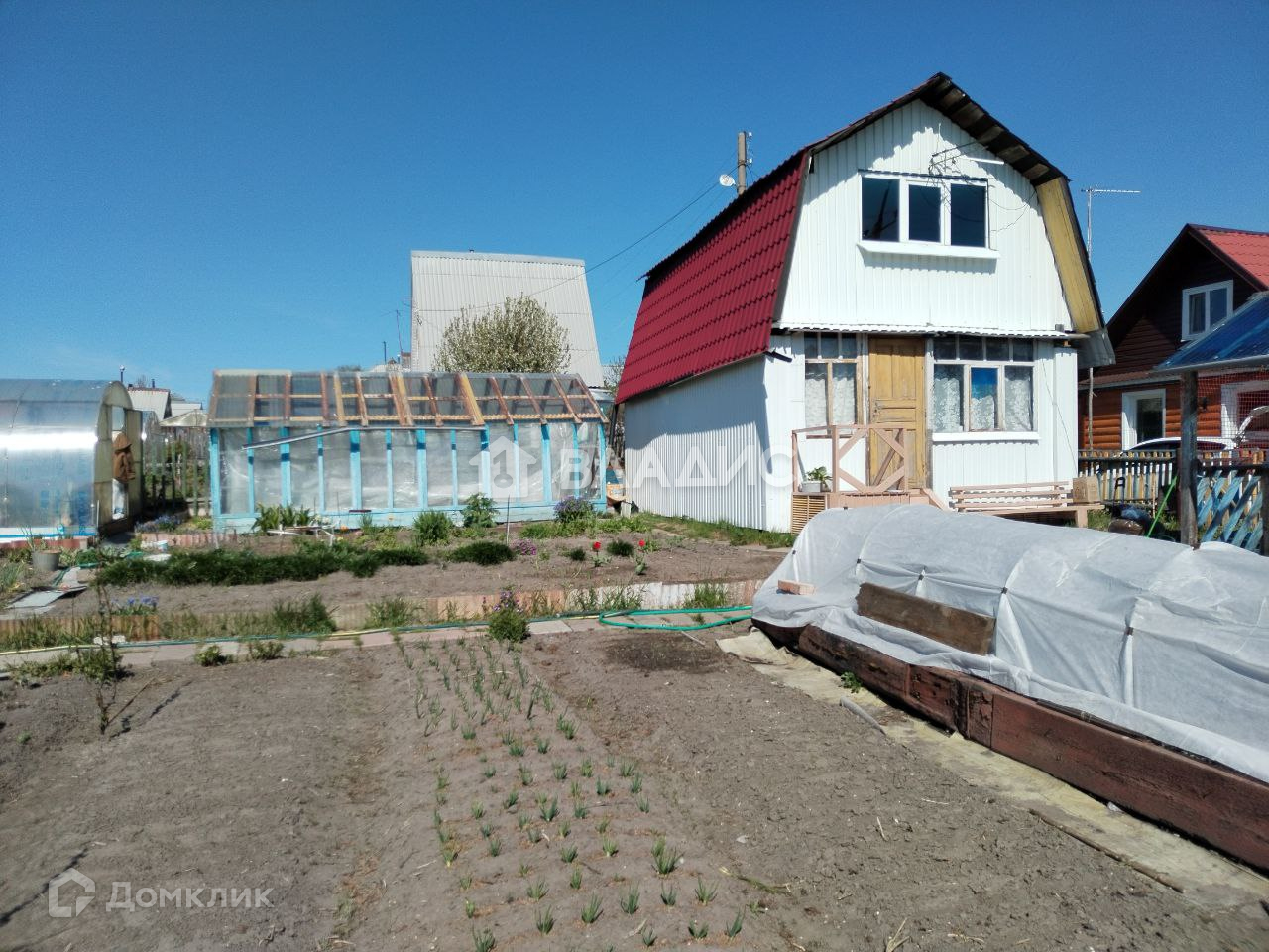Также есть хорошая баня и 2 теплицы. Дача огорожена деревянным забором.