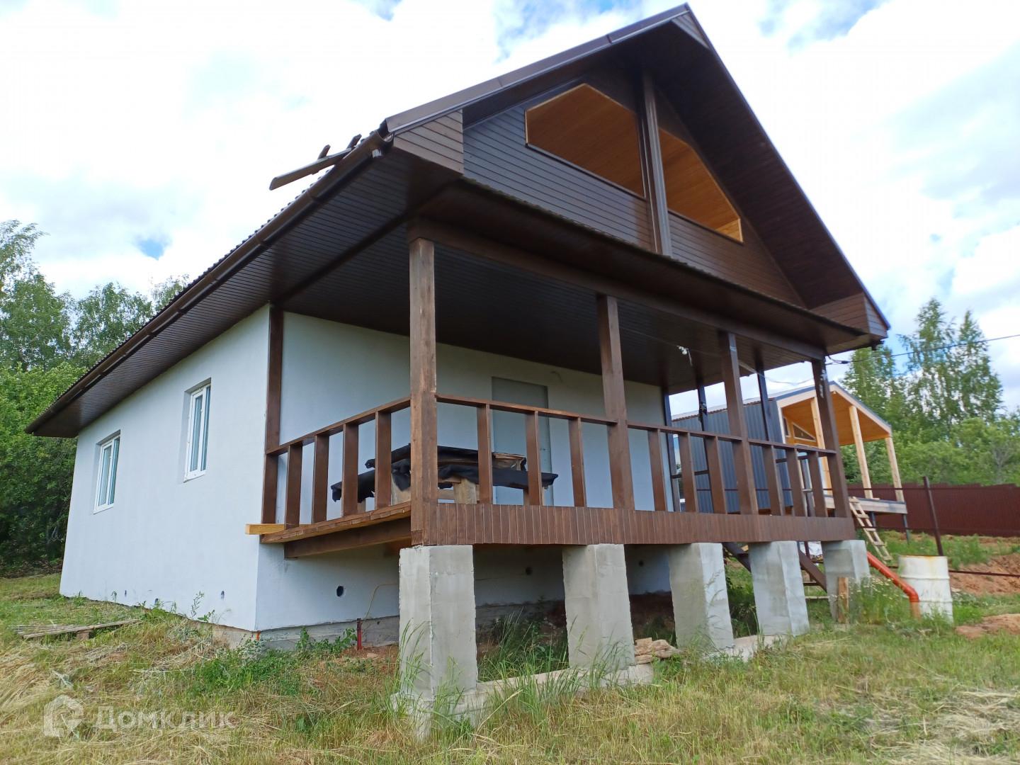 На первом этаже две комнаты, кухня гостиная, санузел+ веранда. Стены заштукатурены и зашпаклеваны.