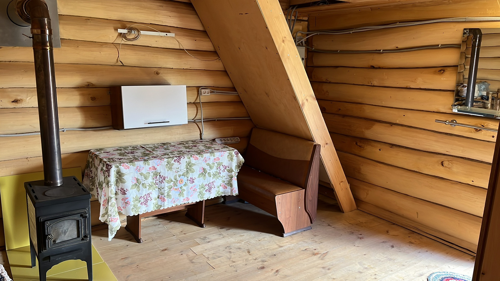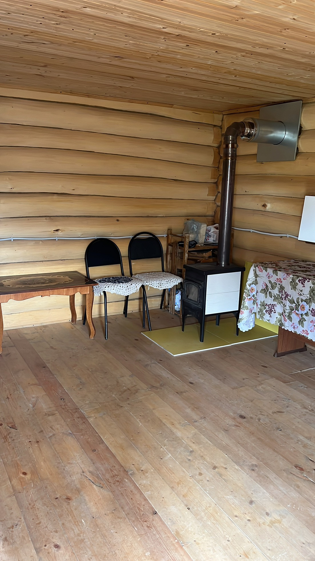 В доме печка камин на дровах.