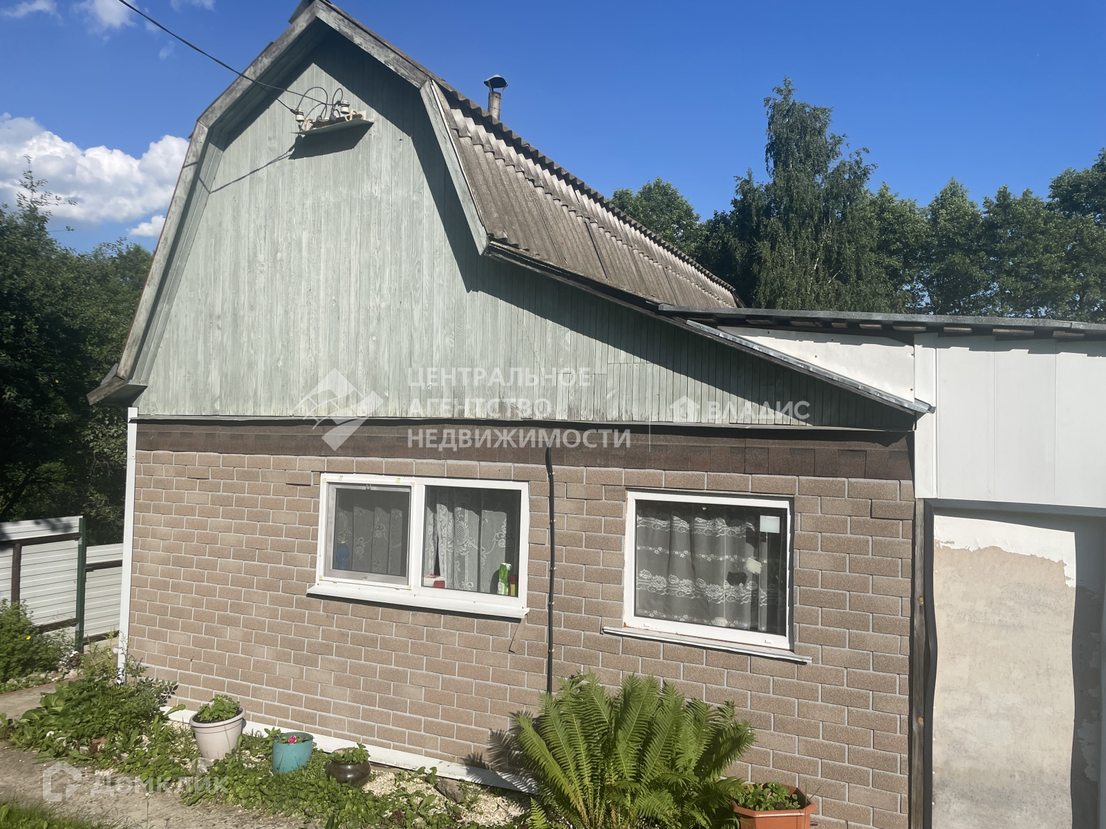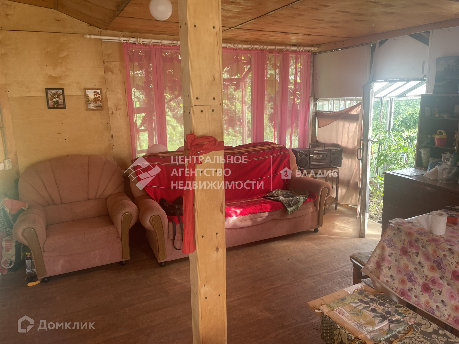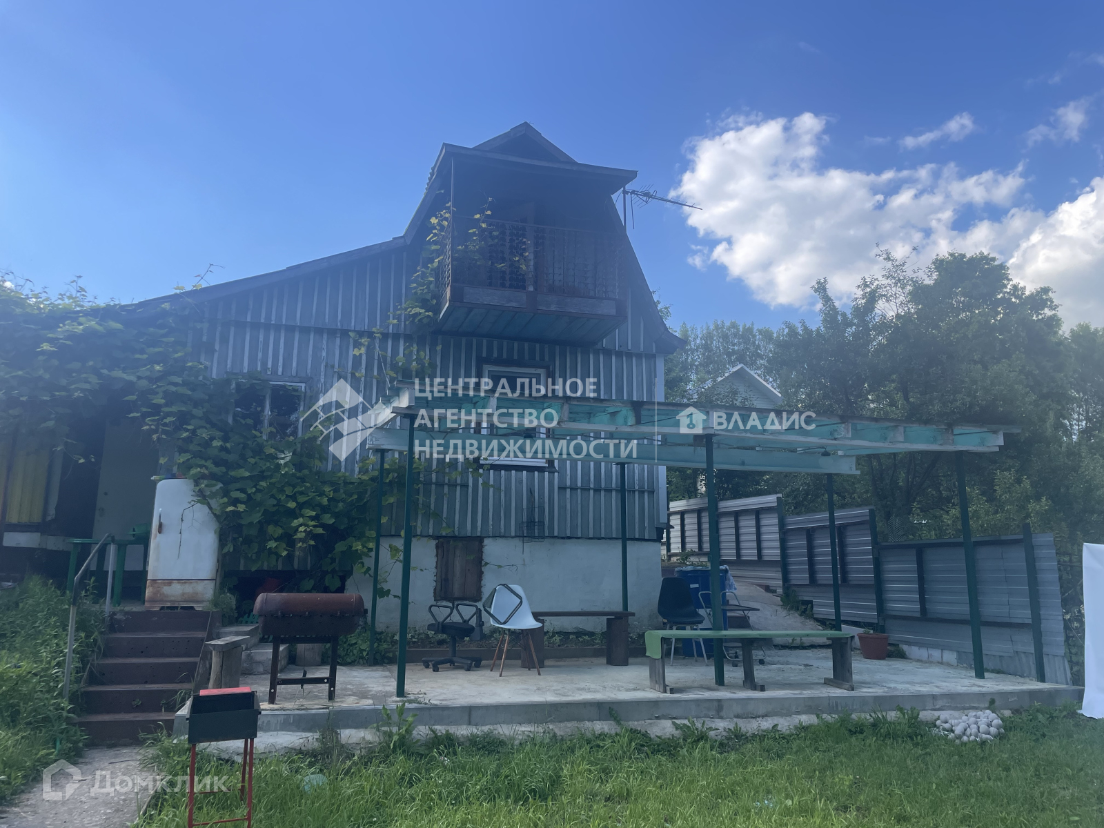 Дача каркасно-щитовая,  двухэтажная (на первом этаже 2 комнаты и терраса, на втором этаже одна комната с выходом на балкон). Также на первом этаже кухня (газ балонный) с небольшой дровяной печкой для комфортного проживания в случае похолодания, санузел. Из террасы есть выход в теплицу. Вторая дверь из дома выходит в крытую зону отдыха, где вечером можно приготовить шашлыки ис комфортом отдохнуть всей семьей или компанией.