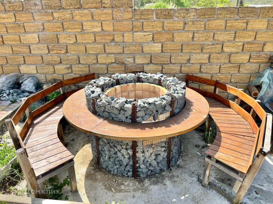 Участок огражден забором из камня, с задней части участка выход на лес.