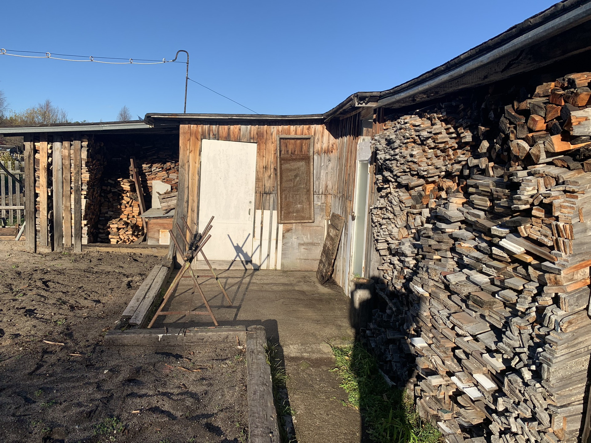 На участке имеется сарай с садовыми инструментами, дровяник с заготовленными дровами и туалет, а так же хоз инструменты.