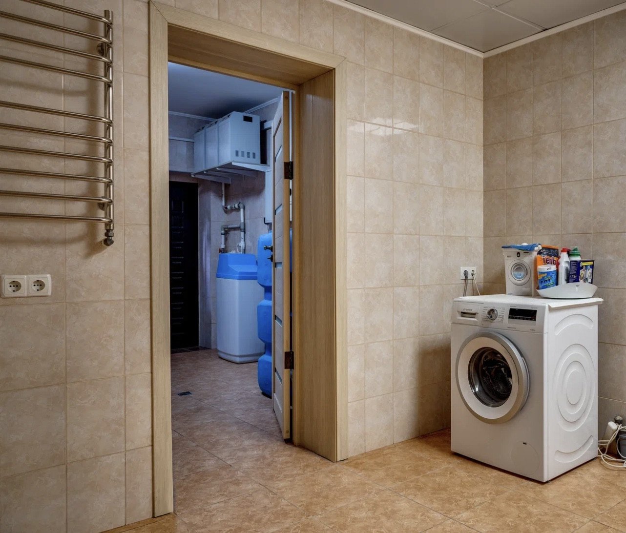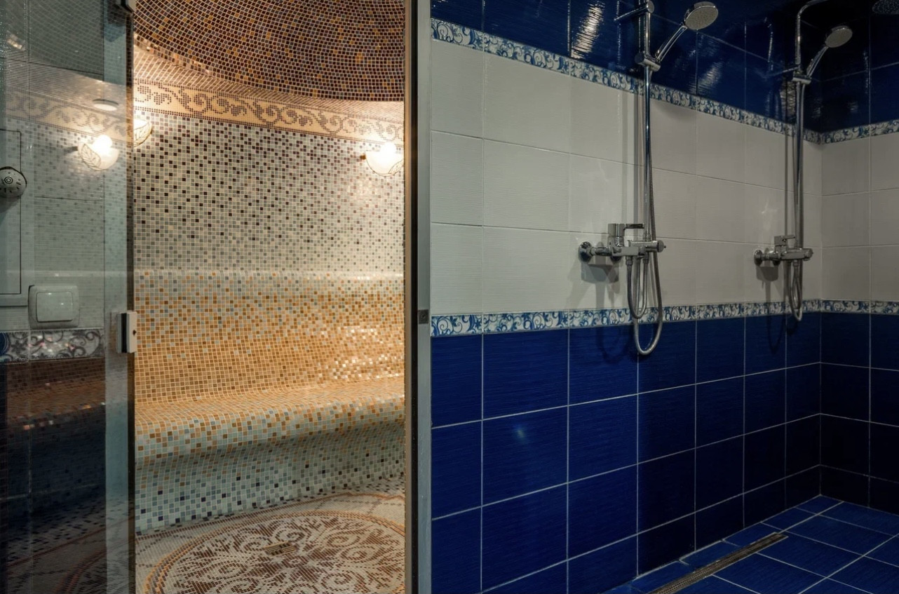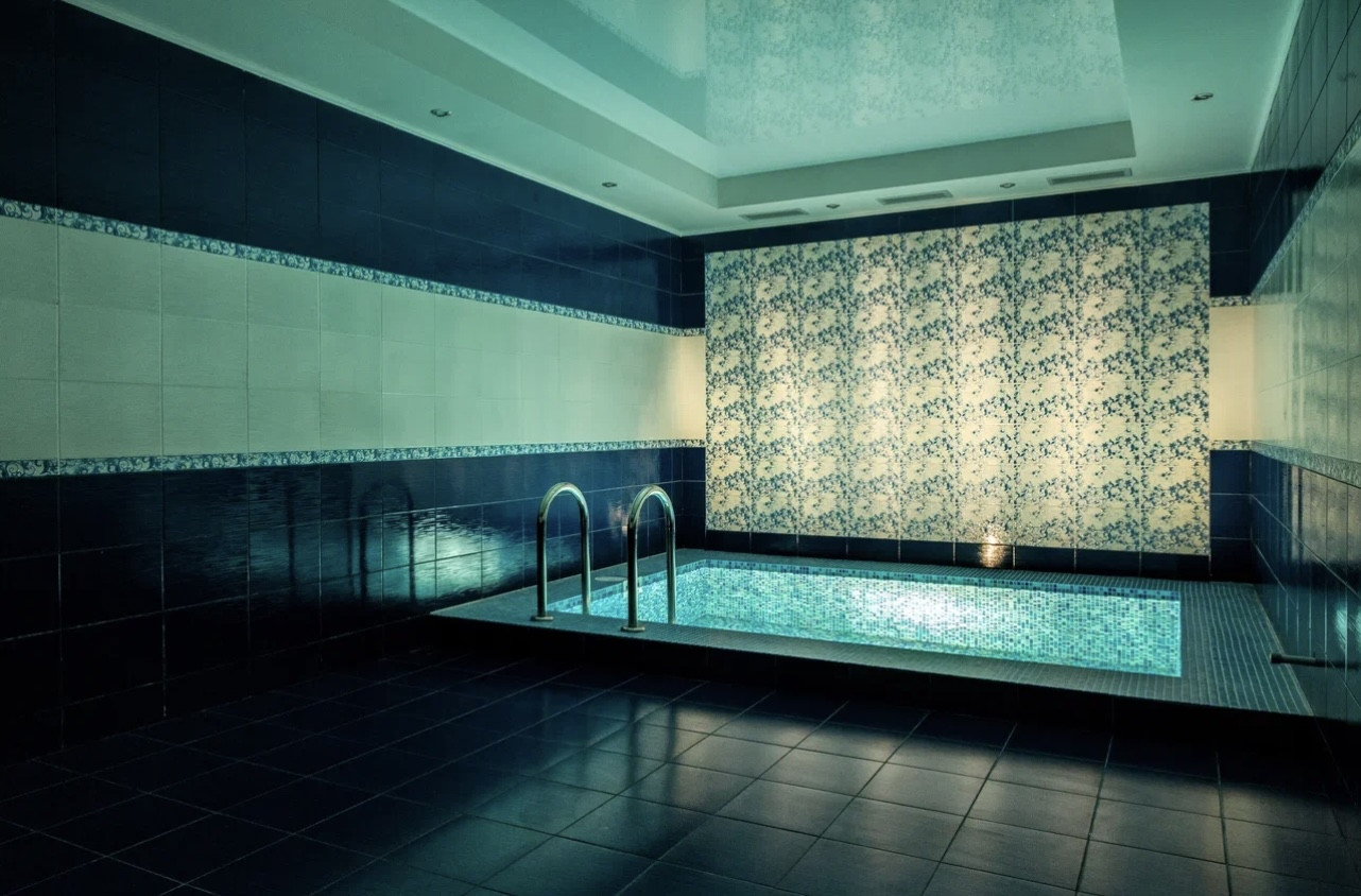 Цоколь дома : Бассейн - лучшее профессиональное оборудование для бассейна с возможностью программирования подсветки бассейна, времени фильтрации, подогрева и поддержания определенной температуры воды. Хамам, душевые, помещение Котельной, Хоз. комната с полками для хранения продуктов, двумя холодильниками, Постирочная, С/у.