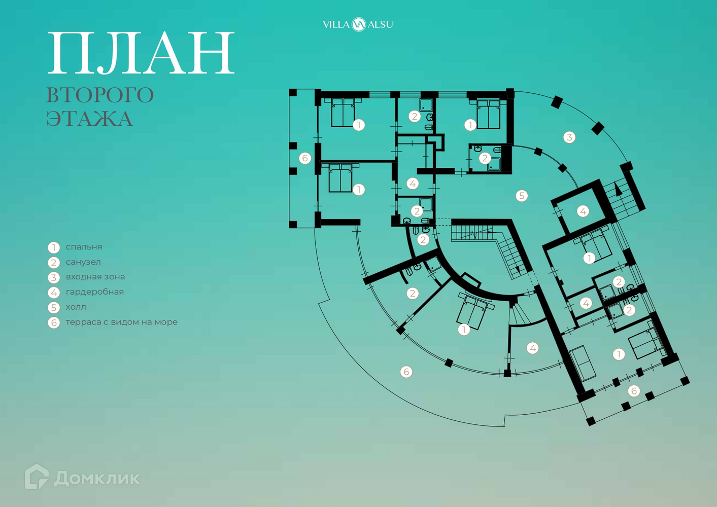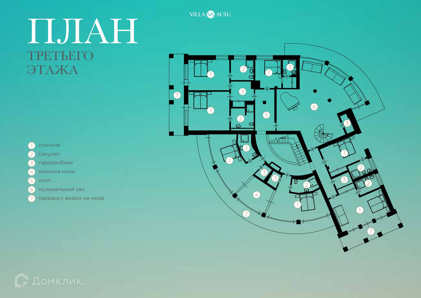 Из всех комнат виллы открывается шикарный вид на побережье, особенно впечатляющий по вечерам, когда Солнце погружается в волны Чёрного моря. Вдоль каждого этажа проходят большие балконы-террасы с великолепными панорамными видами.