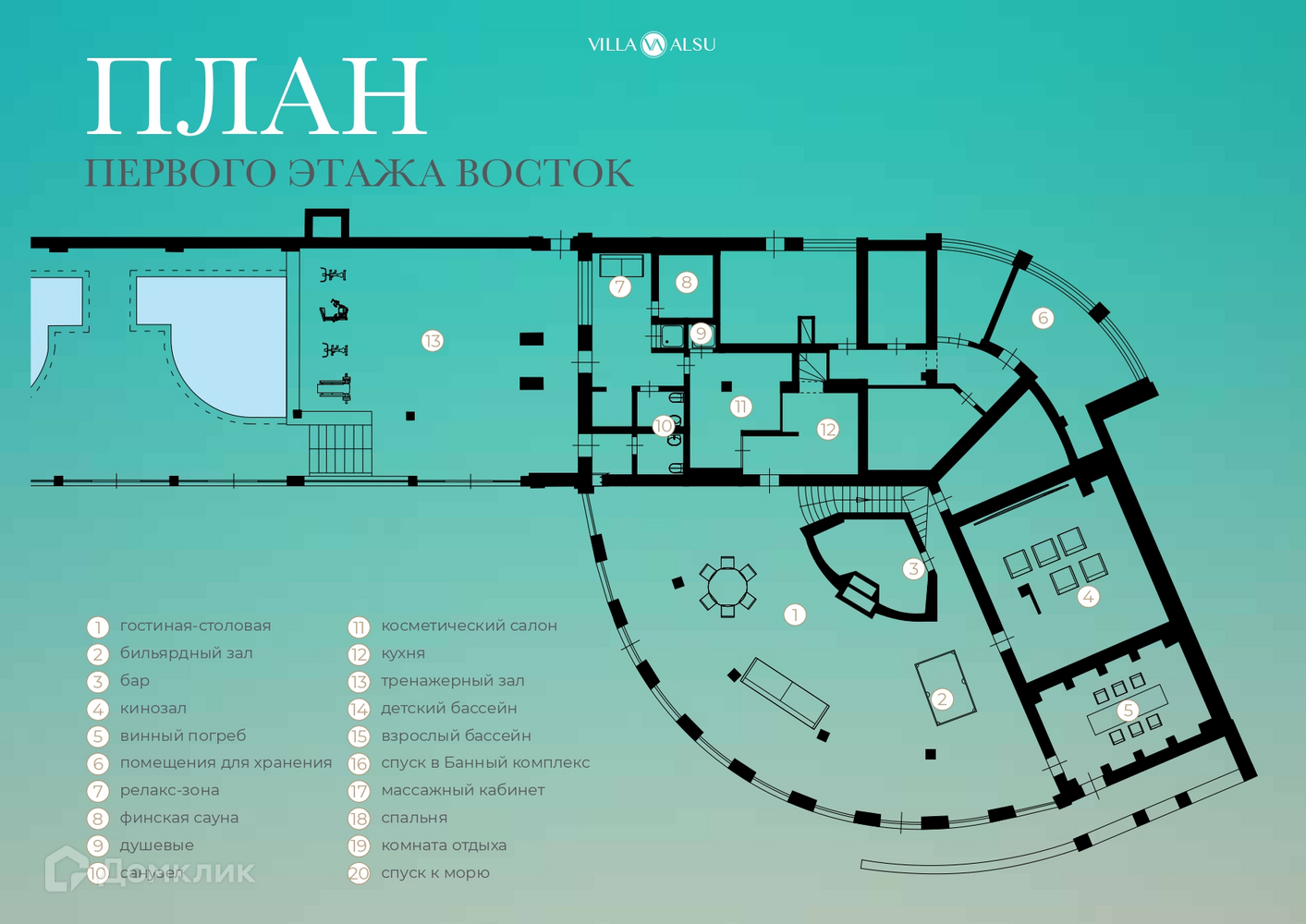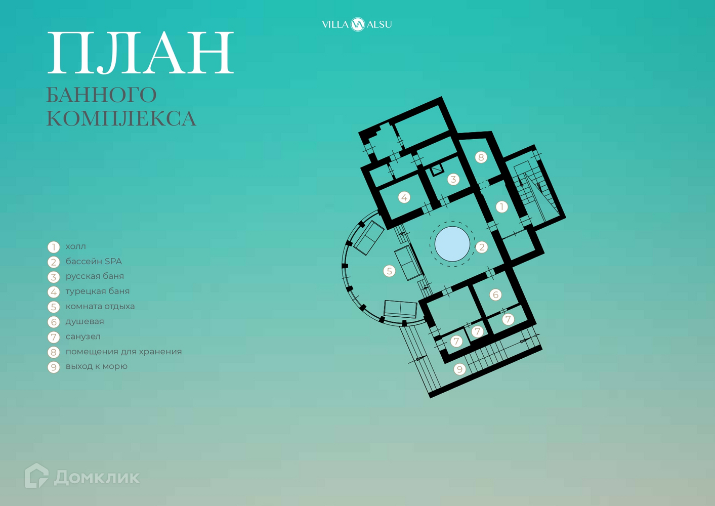 В банном комплексе находятся турецкая баня, русская баня и финская сауна. SPA-салон оборудован гидромассажной ванной, алтайской бочкой здоровья и массажным креслом.