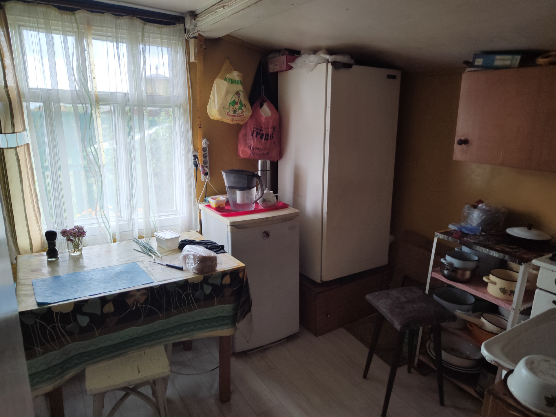 Продается дом 6х5  из бревна в д.Лапач СНТ № 8.Дом состоит из кухни ,комнаты и комната на 2 этаже.Участок ухожен ,разработан.Есть банька из бревна и сарай.Река в 100 метрах.