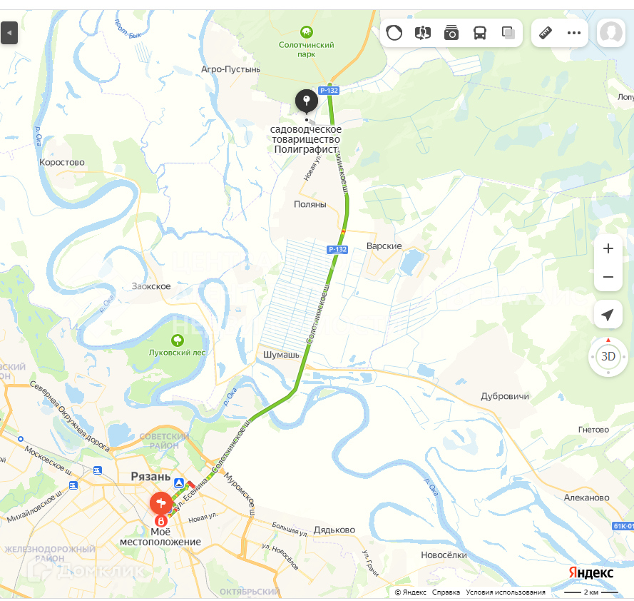 До Солотчи ехать 5 минут, до Рязани - 10 минут.