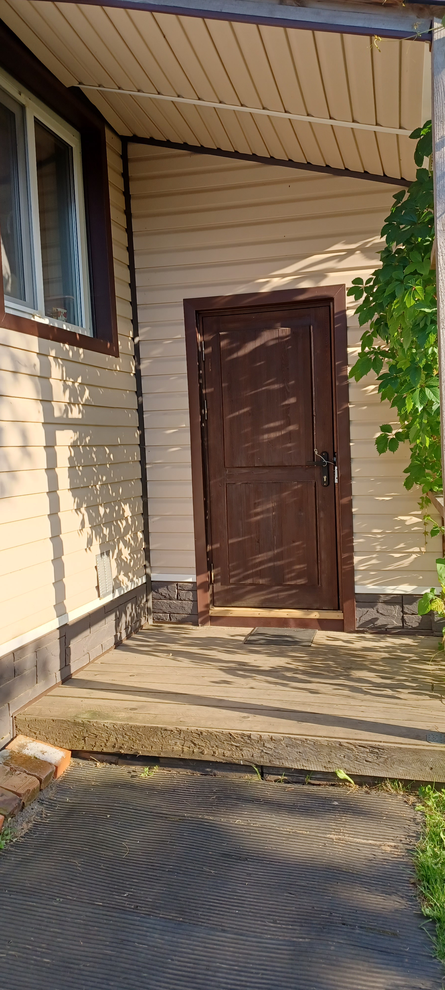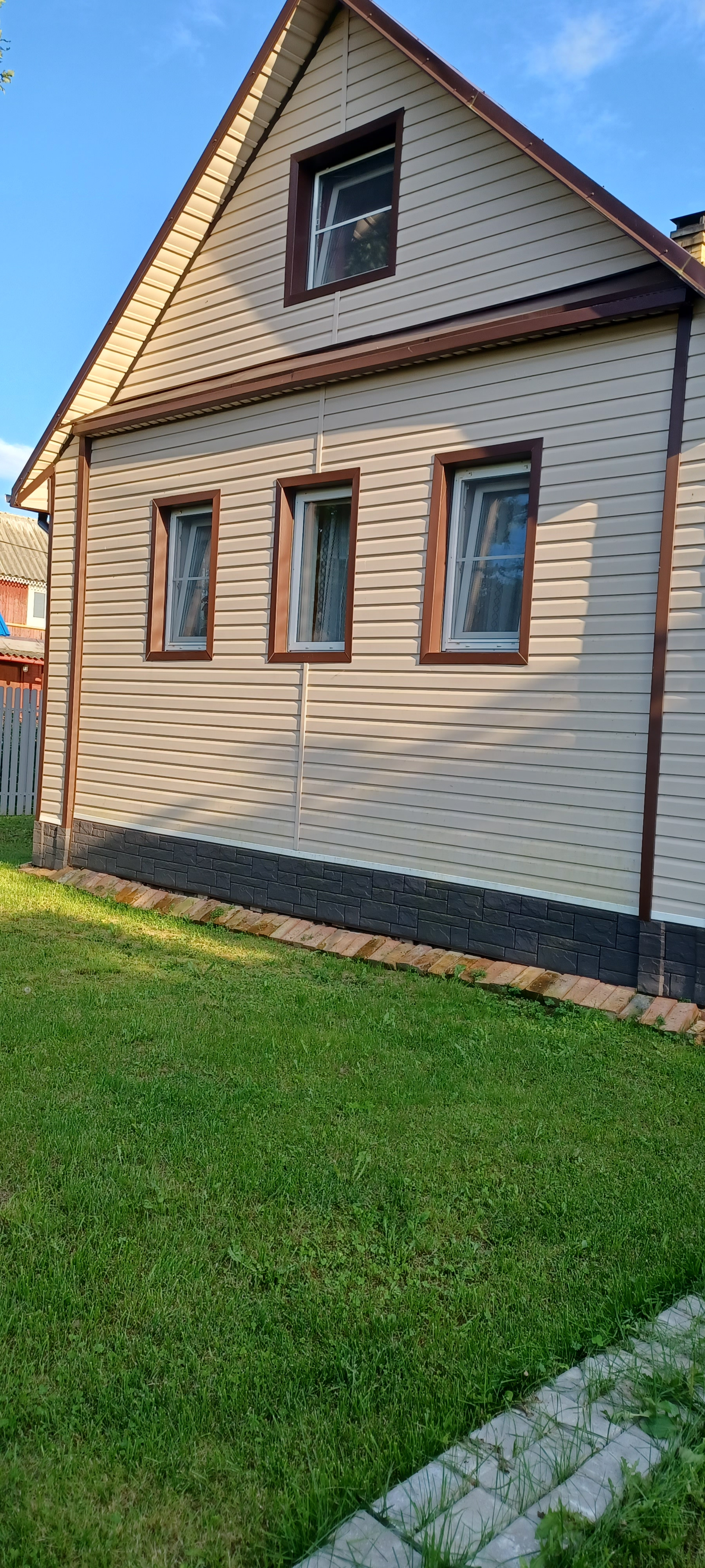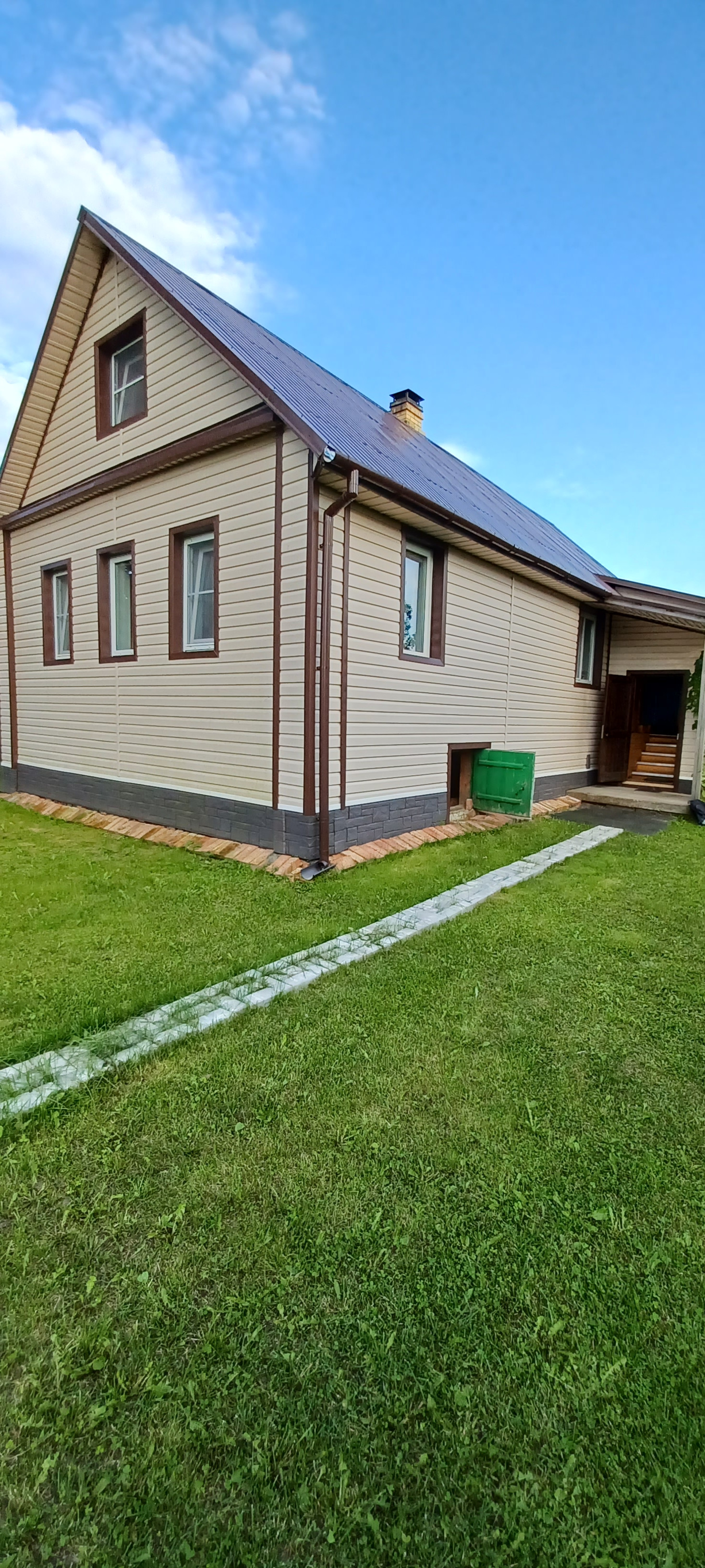 Отличный большой двор с зеленой мягкой травой. Транспортная доступность: электричкой от Московского или Ладожского вокзалов Санкт-Петербурга. От железнодорожной станции - платформа 55 км до дома - 5 -10 минут пешком.