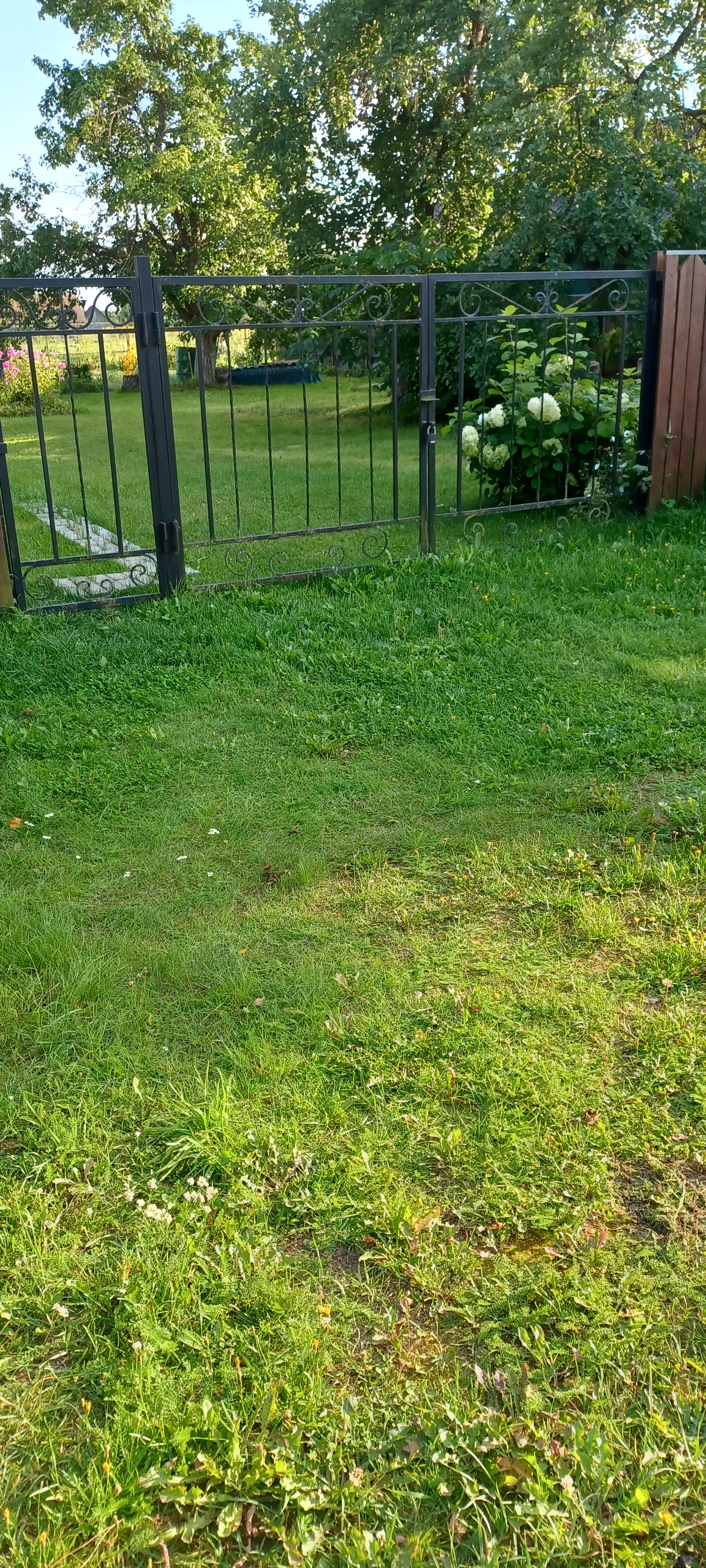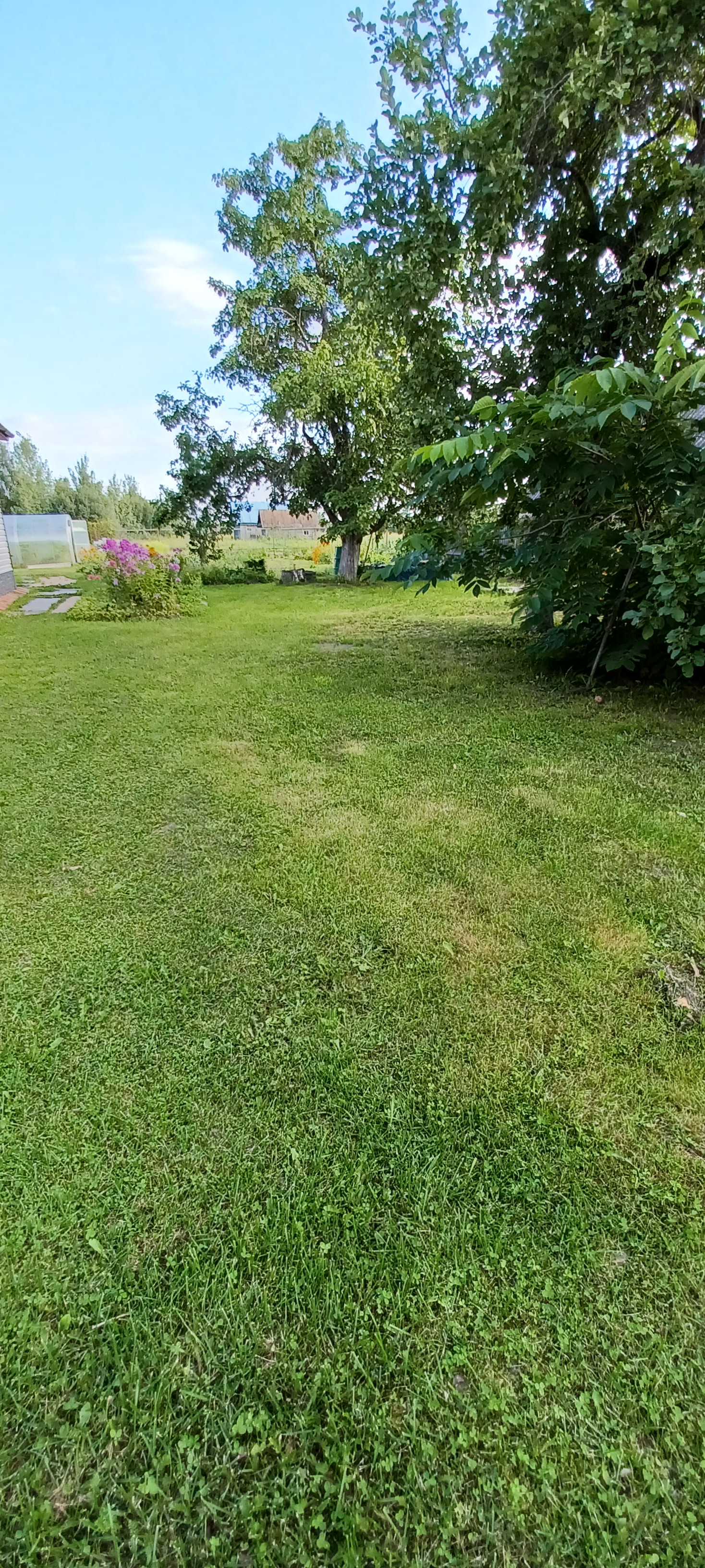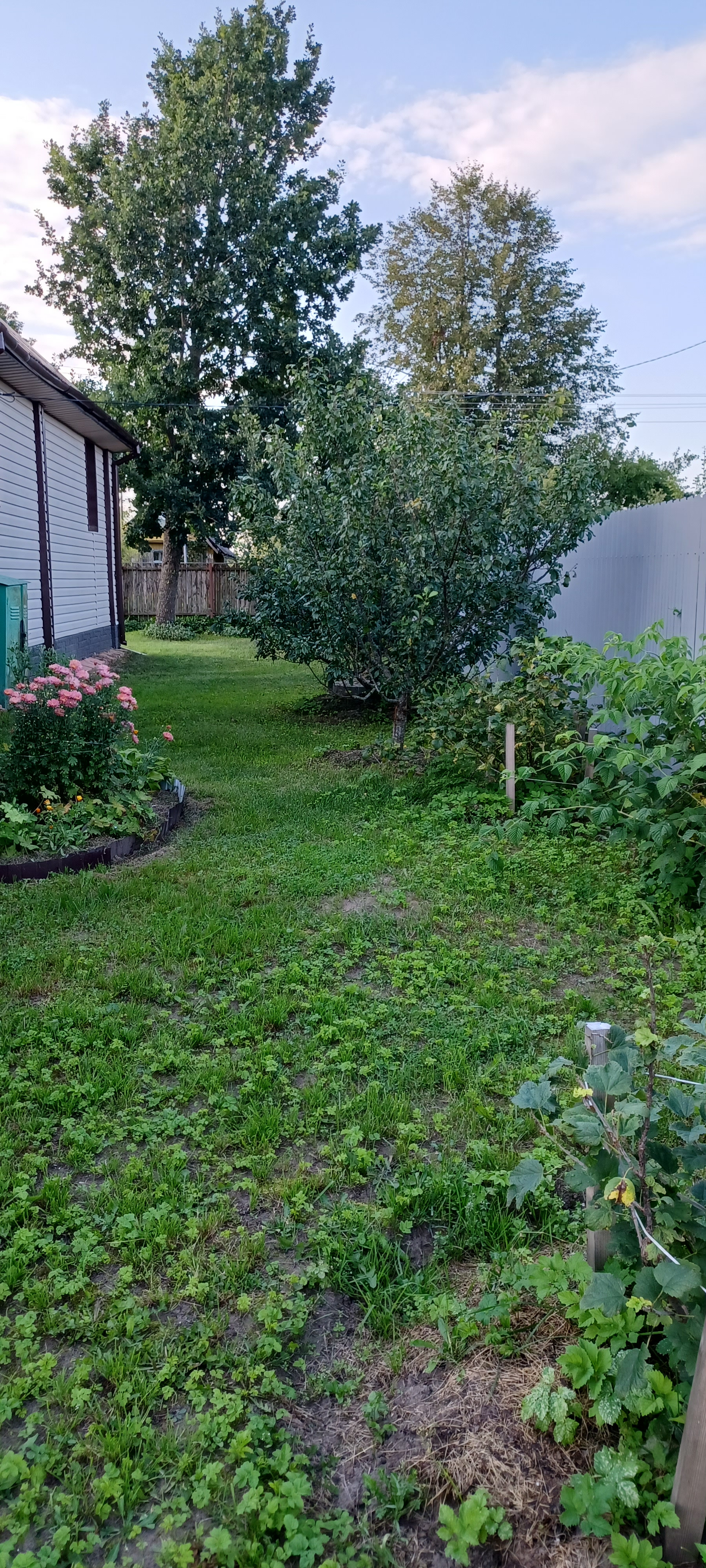 Сад: большой, зеленый с множеством насаждений. Яблони (ранние и поздние), сливы, орех «Пекан», кусты черной и белой смородины, крыжовник.