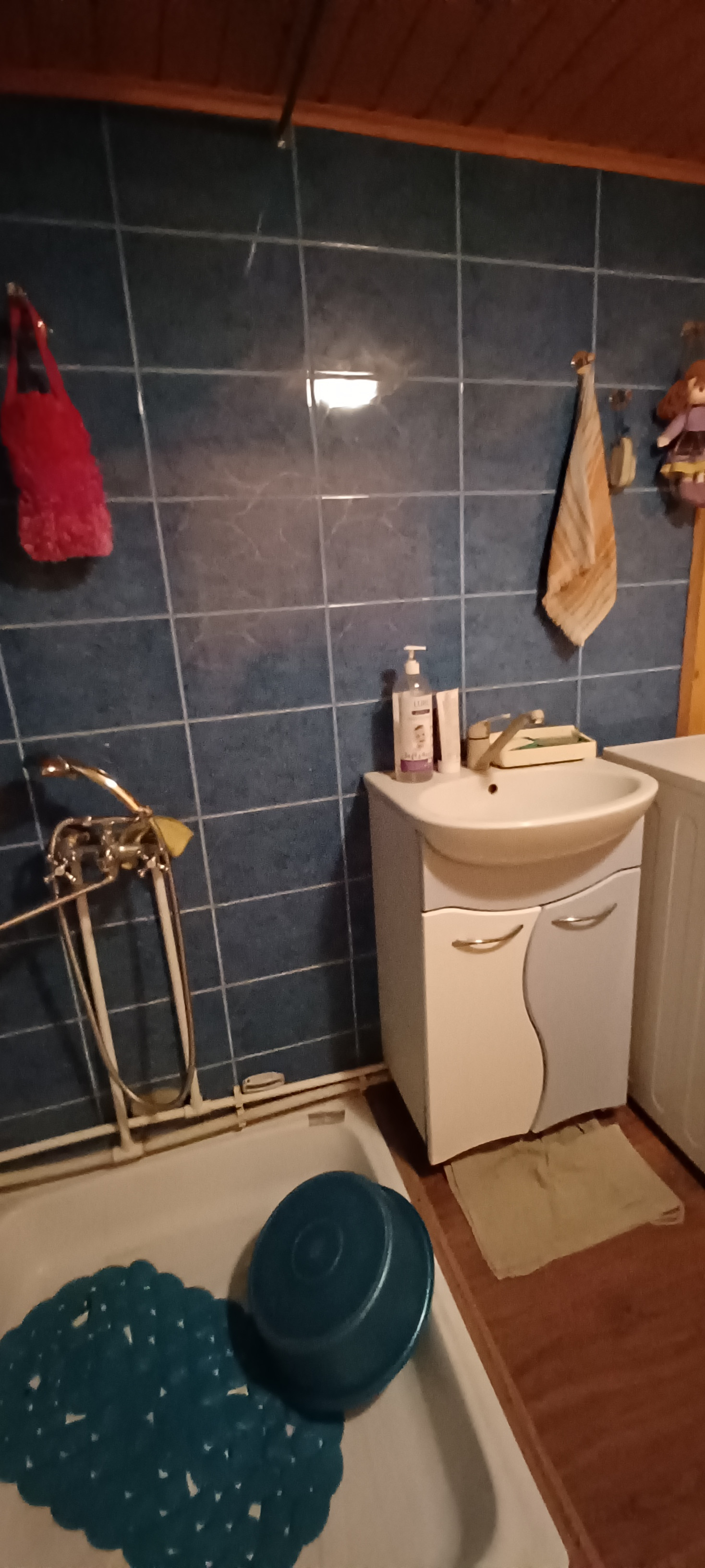 Санузел: туалет с внешней канализацией (очищен в мае 2024 года), душевая, раковина с краном, накопительный водонагреватель (бойлер новый установлен в 2023 году).