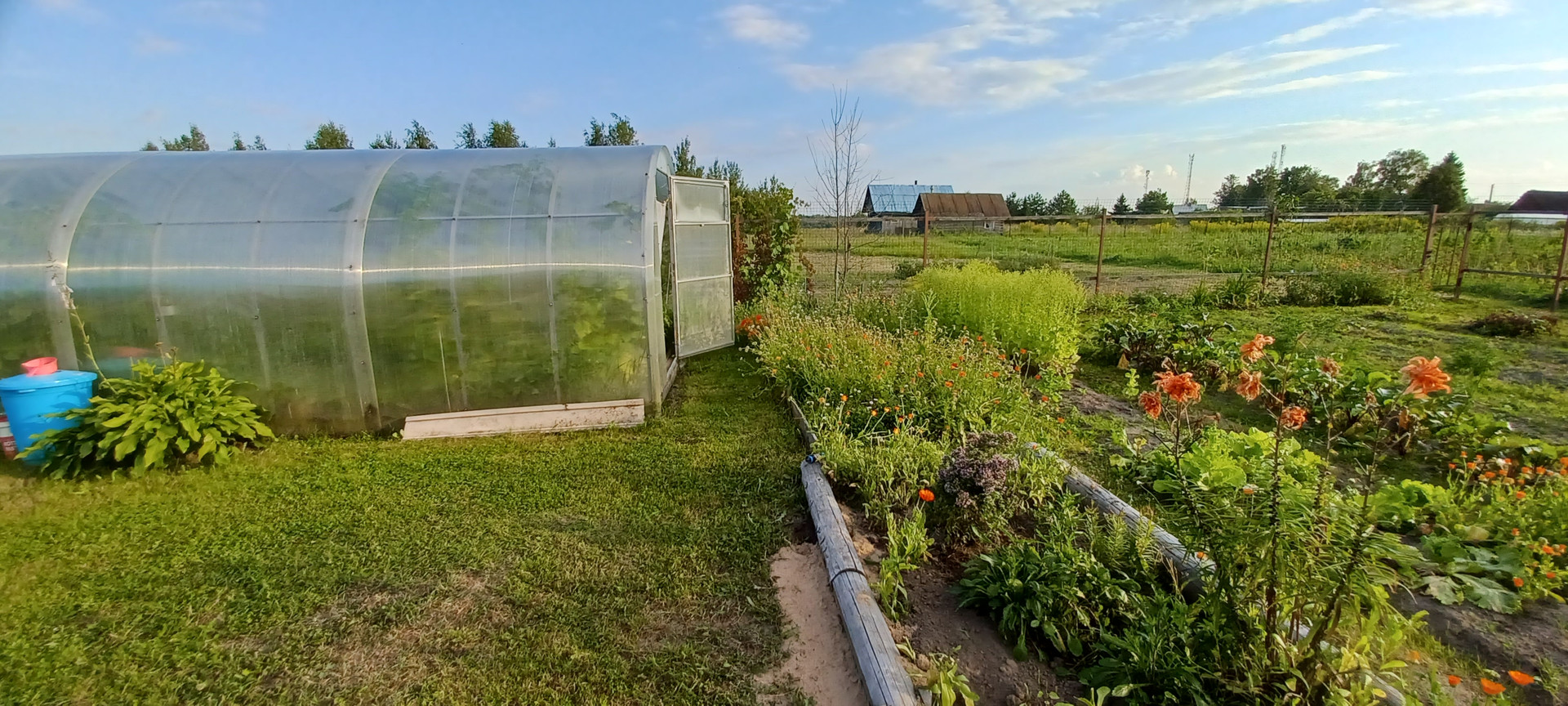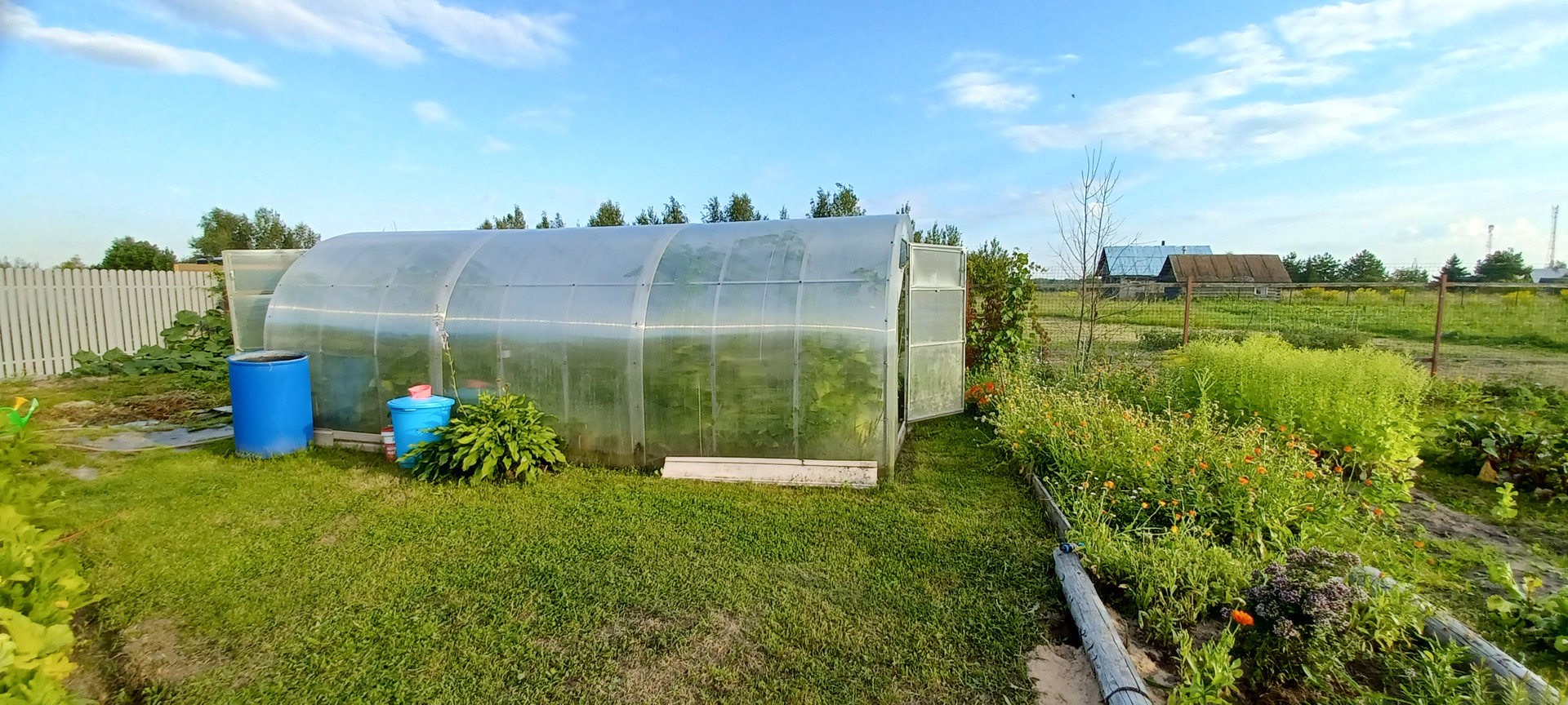 Проведено межевание. Очень хороший сухой участок, почва на участке легкая, растет все. Все очень тщательно продумано. Выращивают всевозможные овощи, прекрасно растет картофель. Практически отсутствуют вредители.