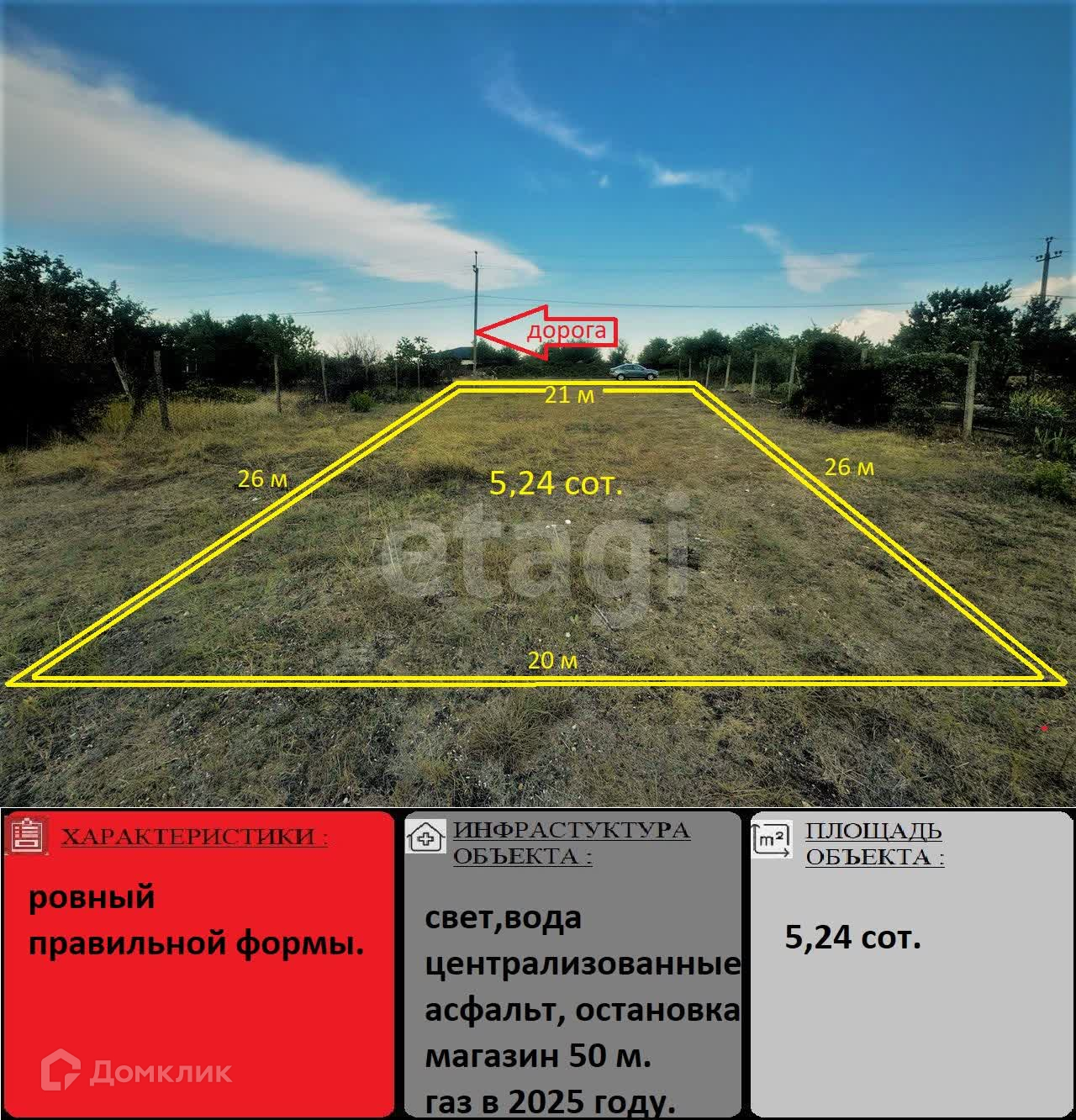 Участок прямоугольный, площадью 5,24 сотки.