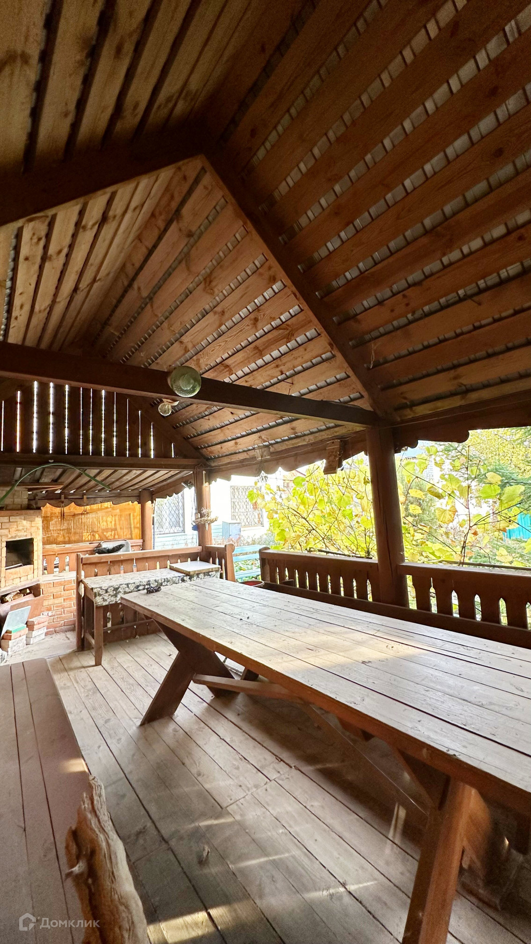 На участке имеется просторная беседка из дерева, под одной крышей с банней.