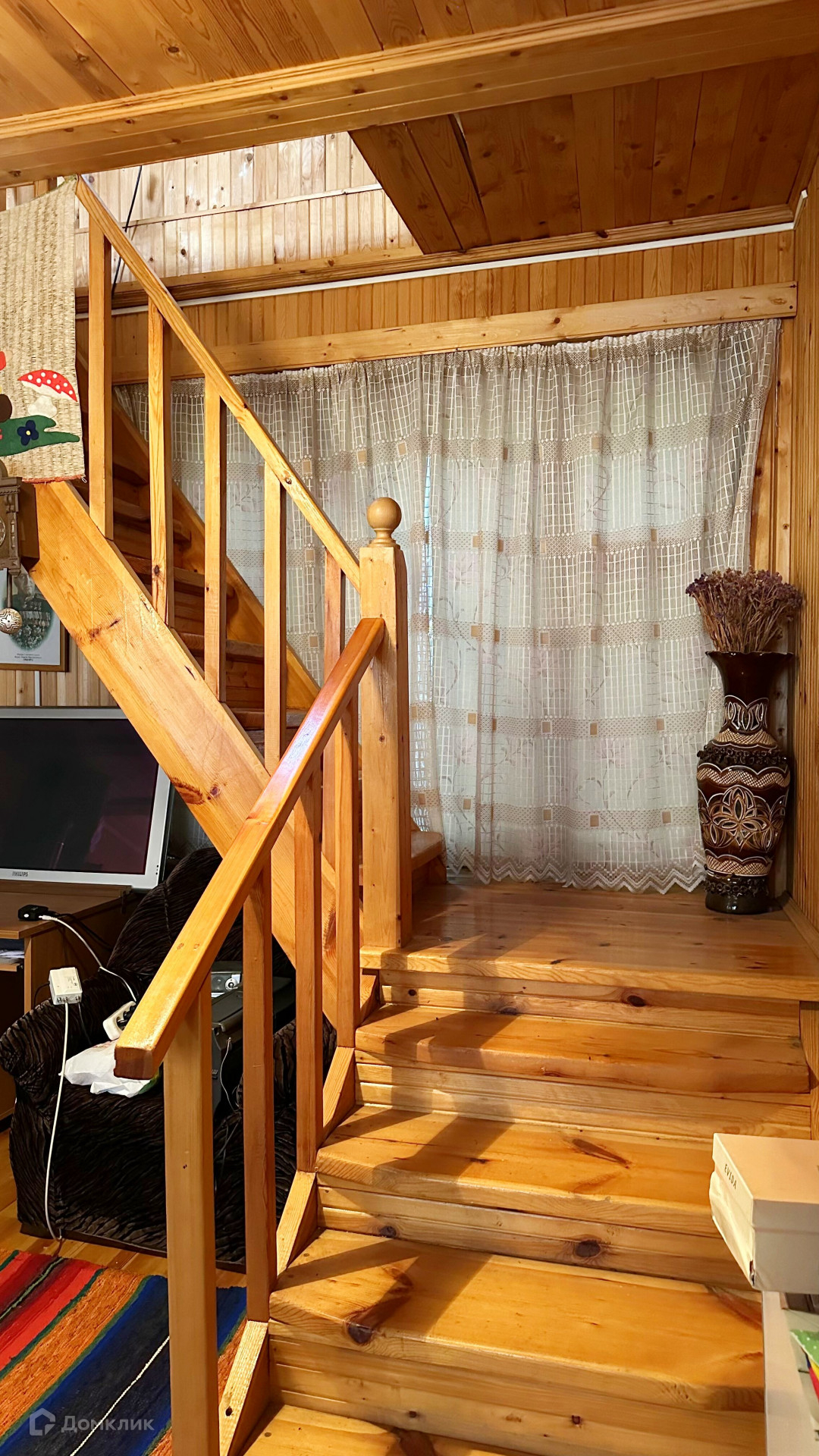 На первом этаже большая гостиная, кухня.