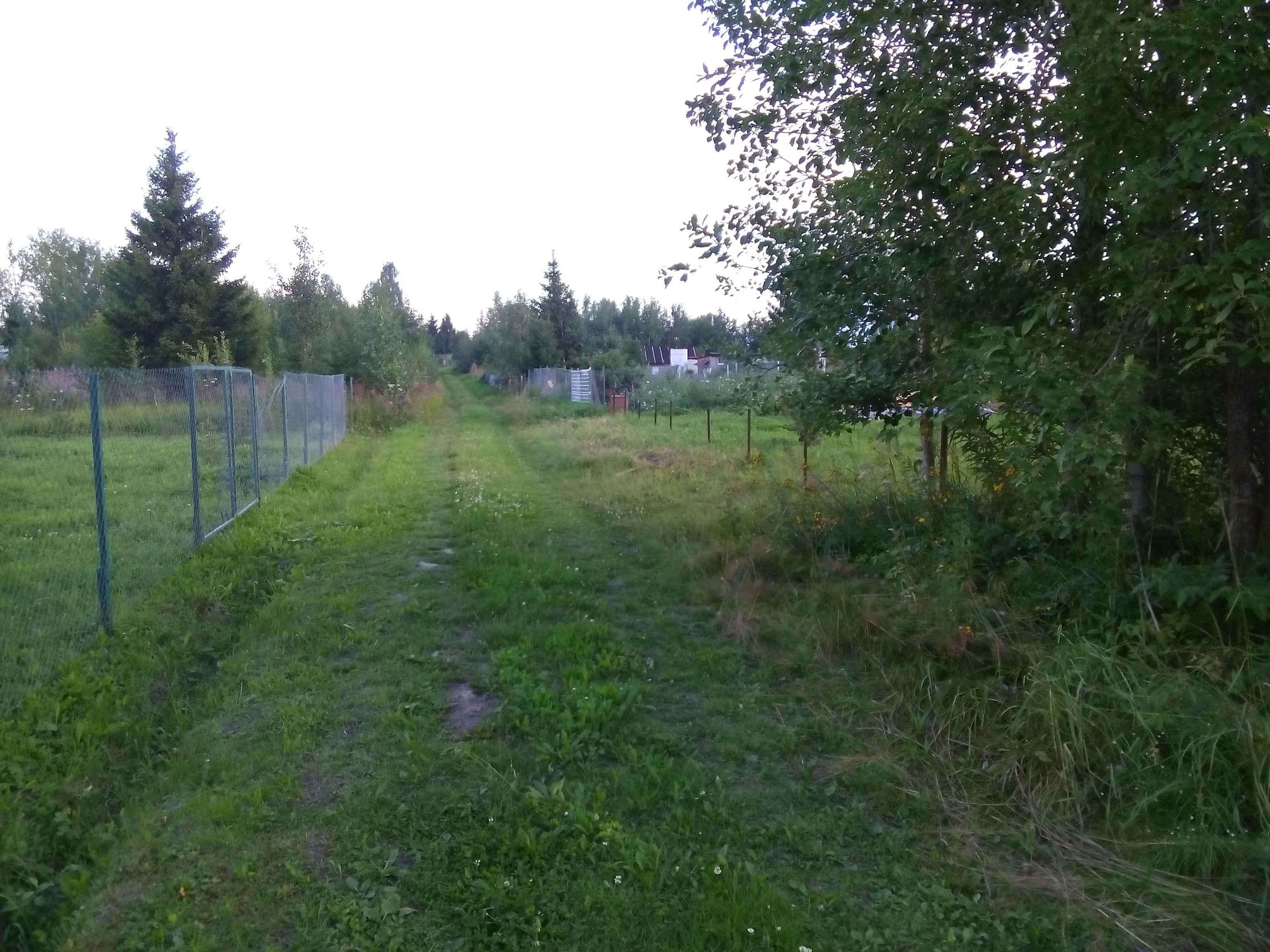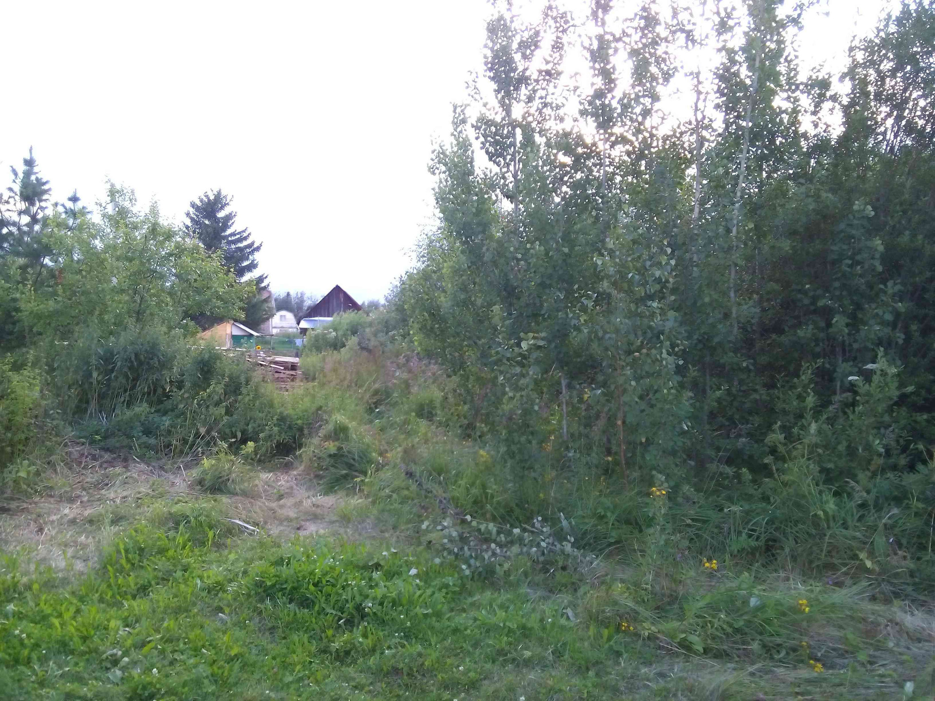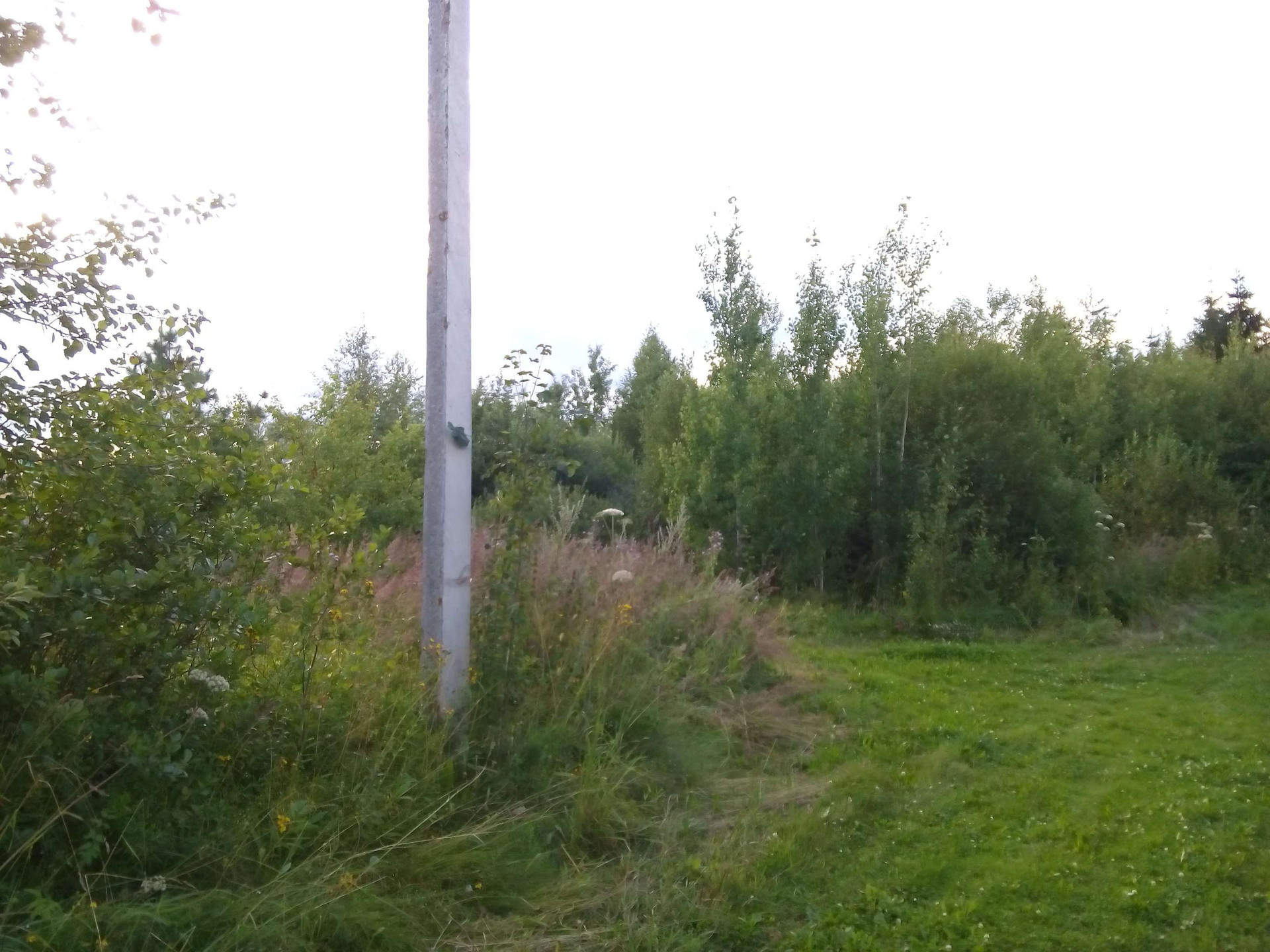 Участок не обрабатывался  на нем 2 большие ели, несколько яблонь, электрический столб.