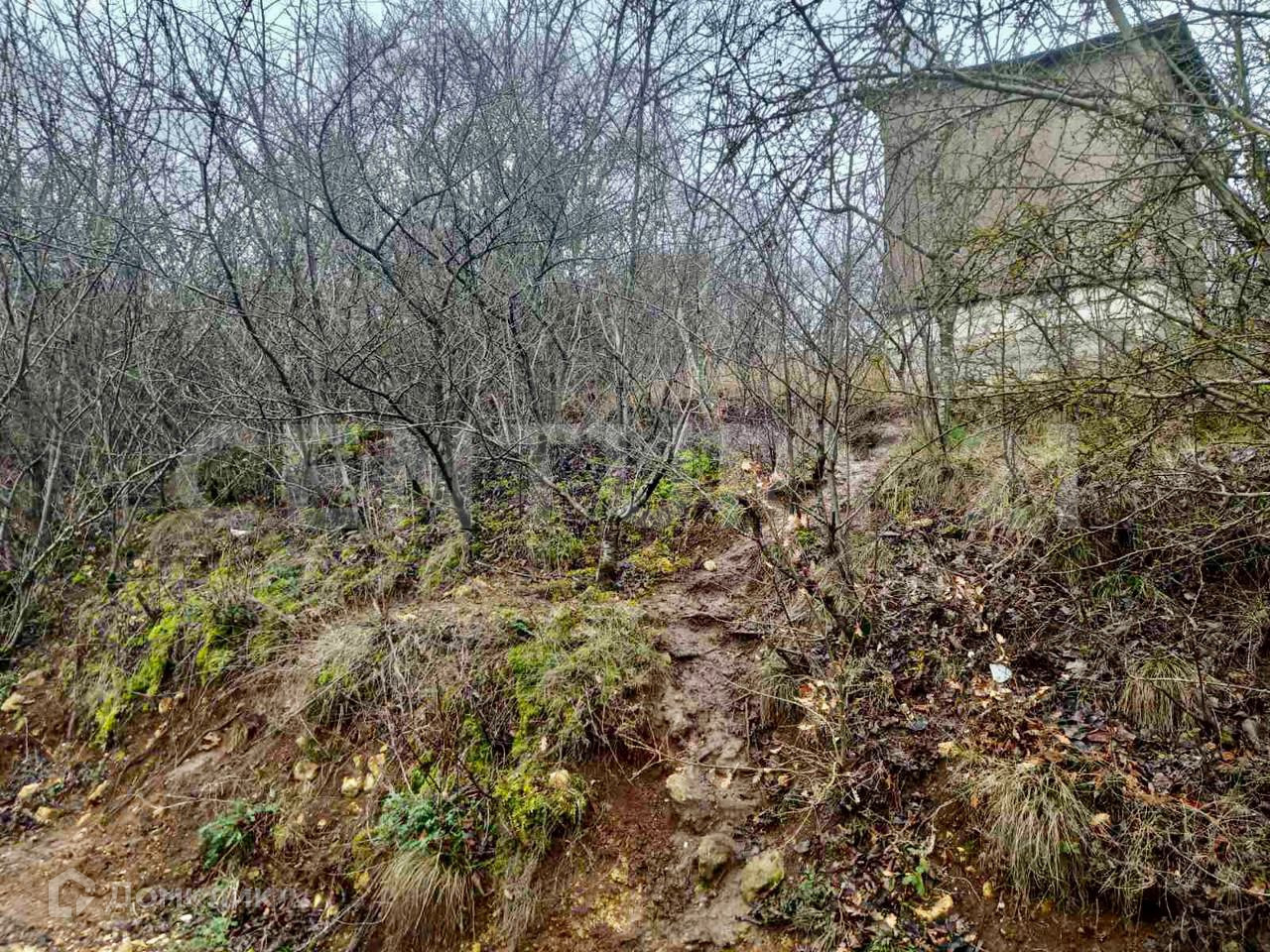 Участок правильной формы, есть уклон,  заросший.