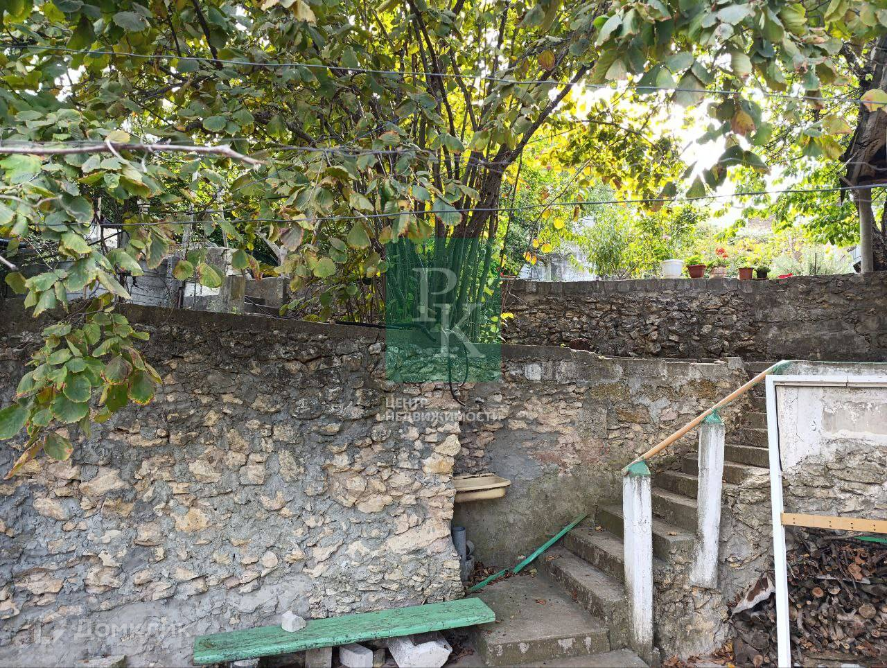 Участок террасированный, есть бетонные лестницы, во дворе бетонная площадка для машины.