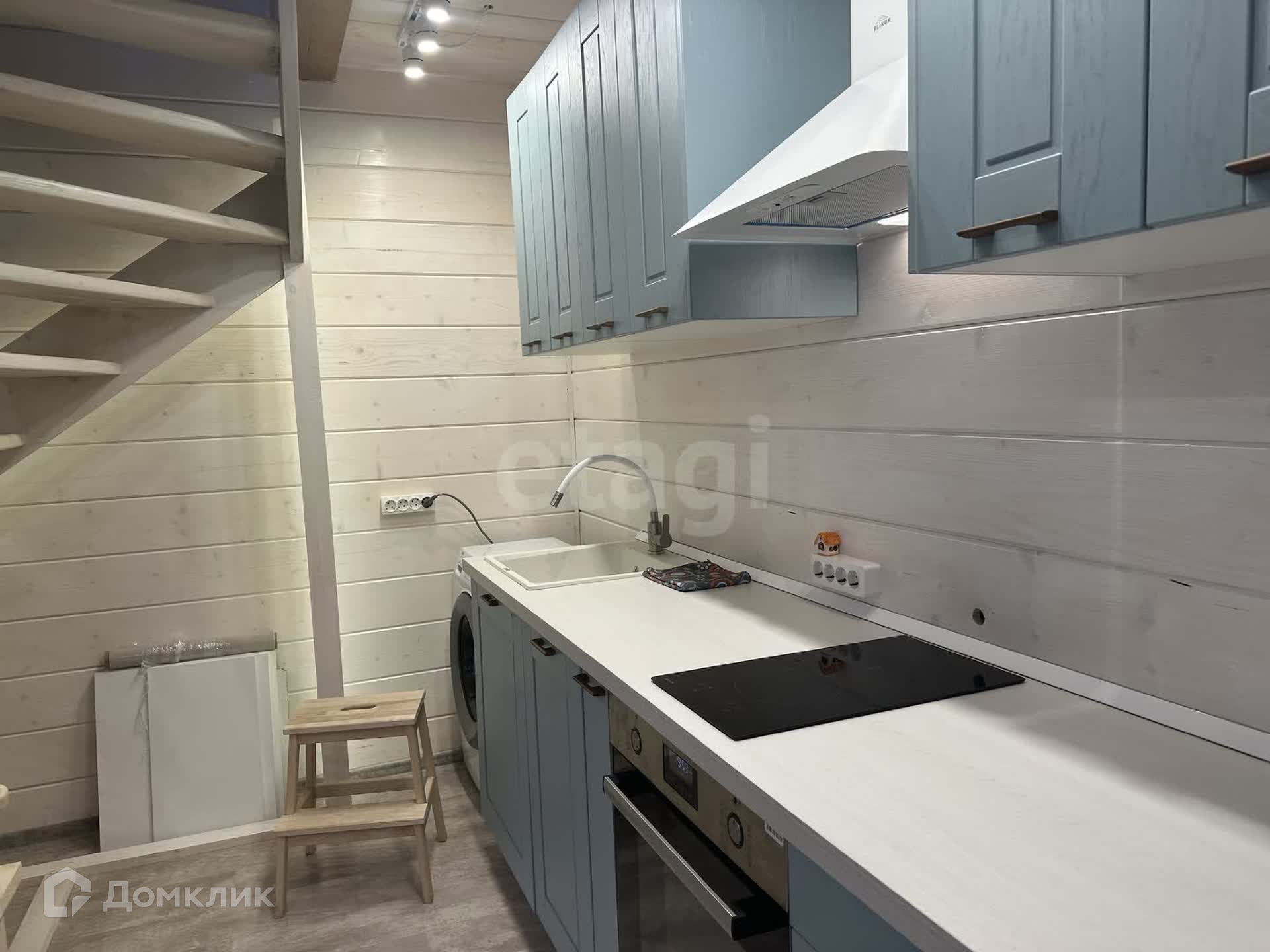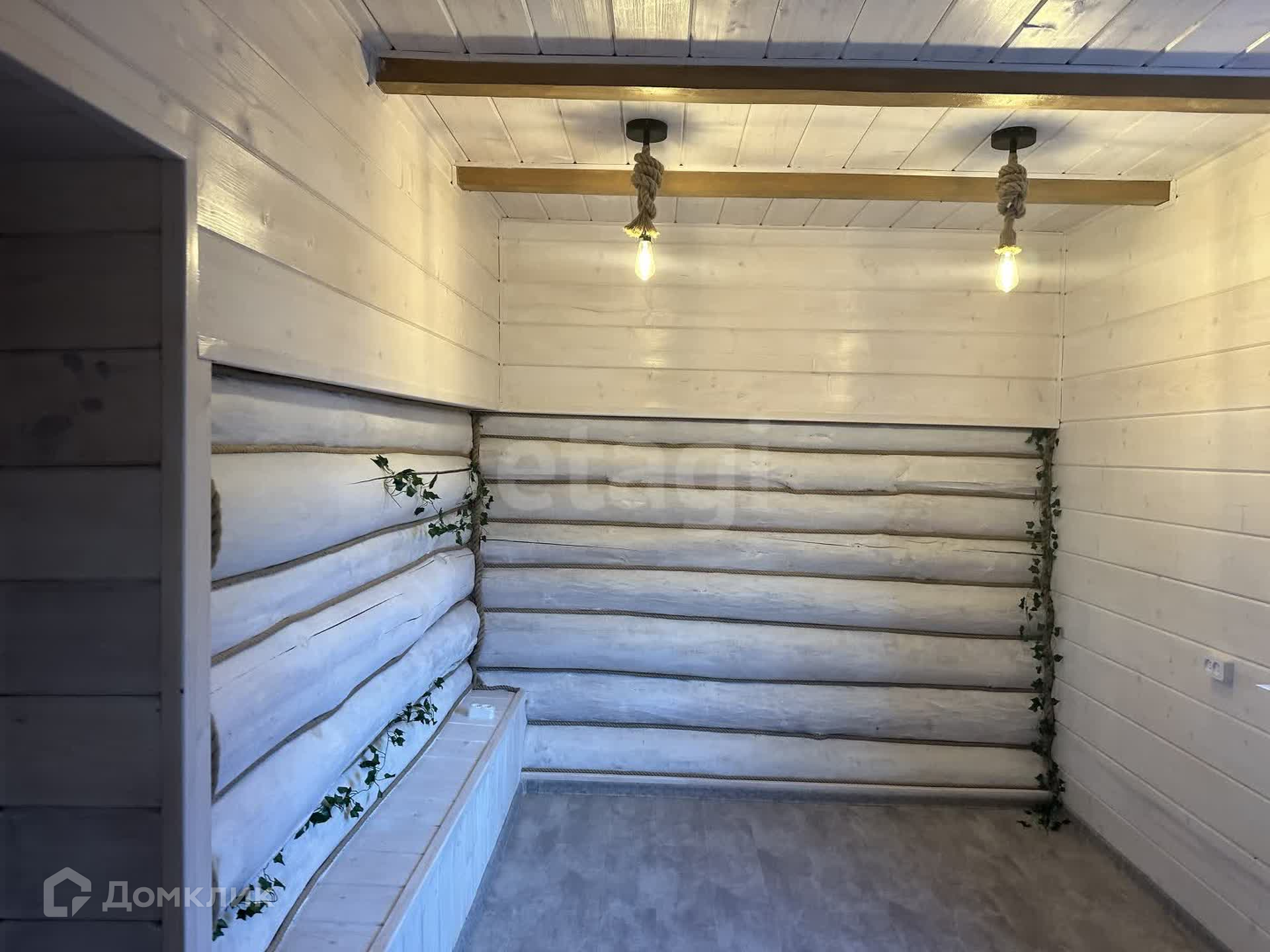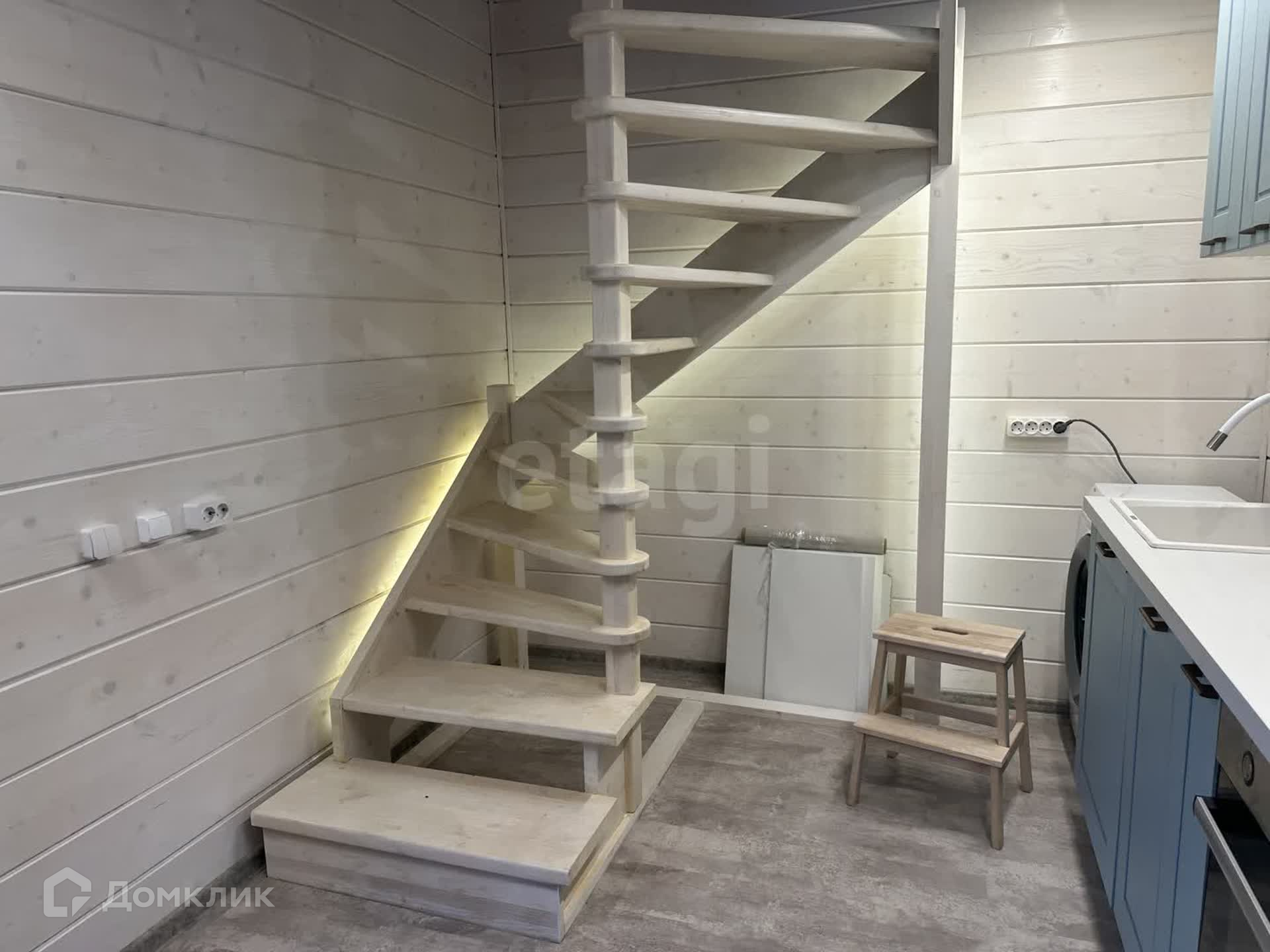 Дом состоит из двух этажей. На первом расположена кухня, комната, баня- сауна, душ и туалет.