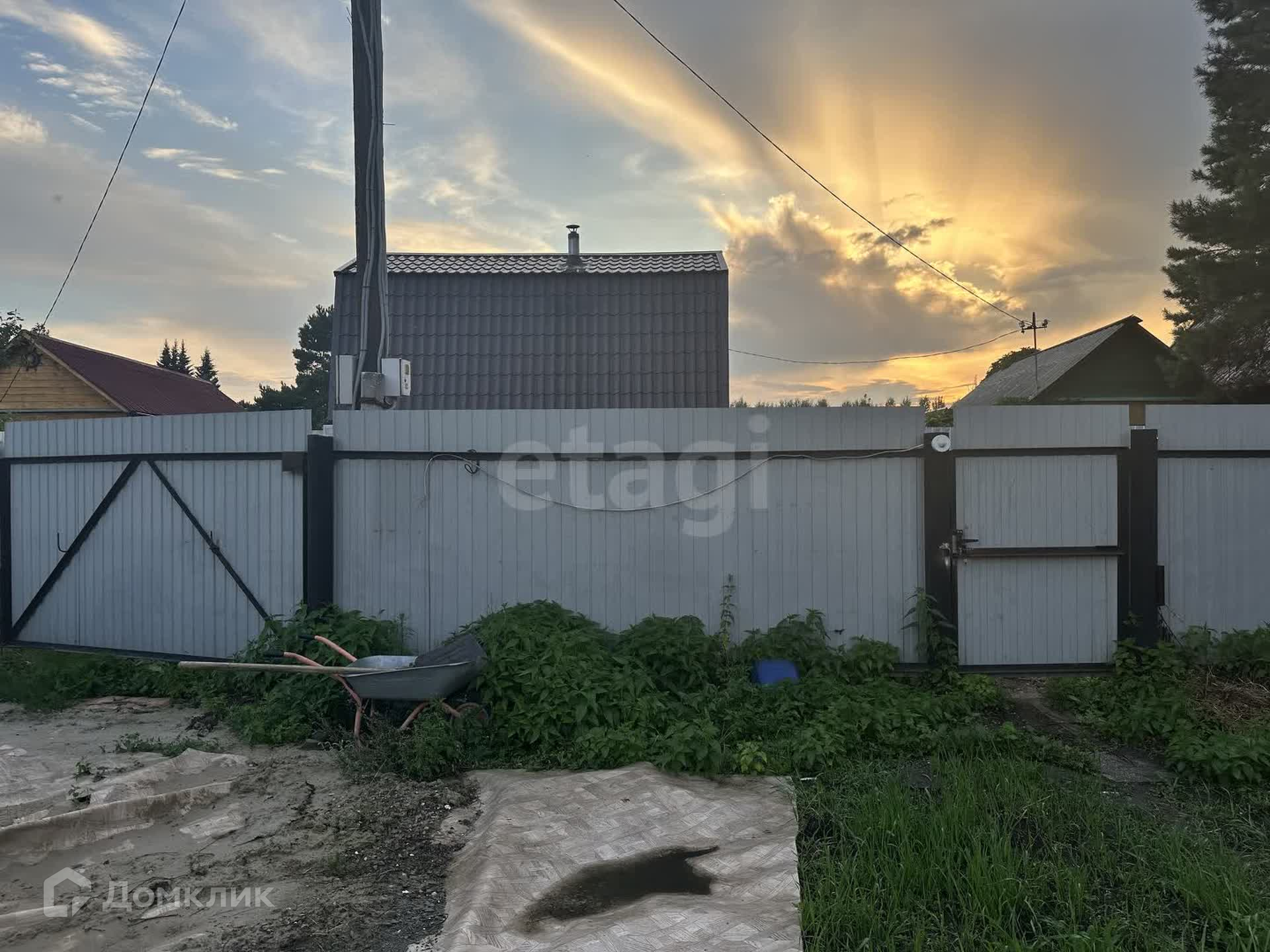 На участке 6 соток есть фруктовые насаждения,  забор из профнастила, по фасаду .
