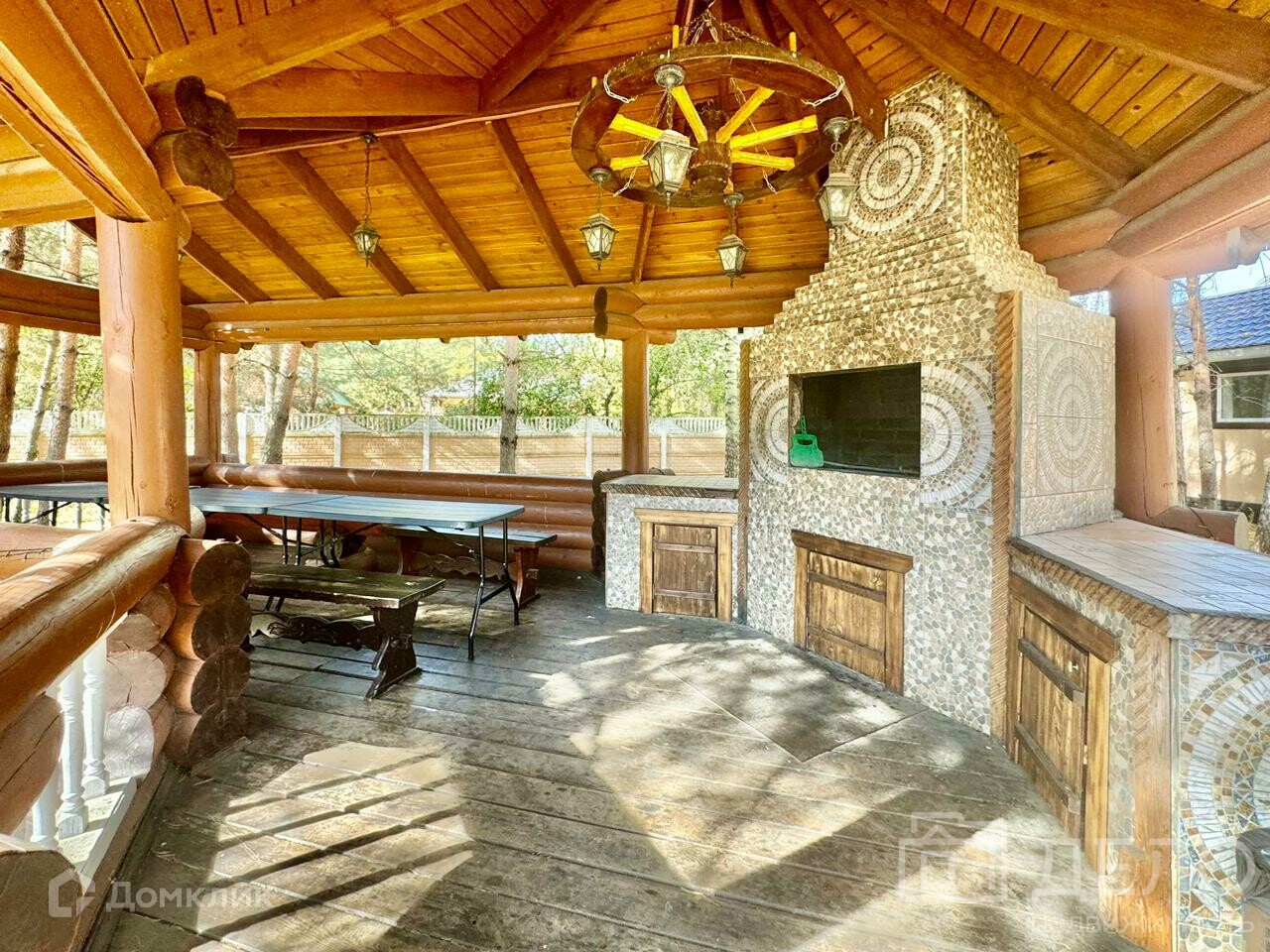 Открытая беседка с мангальной и столовой зоной.
