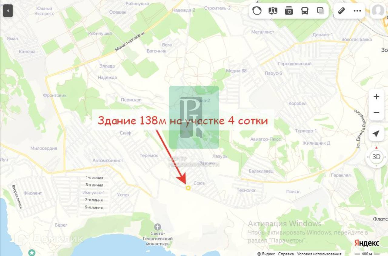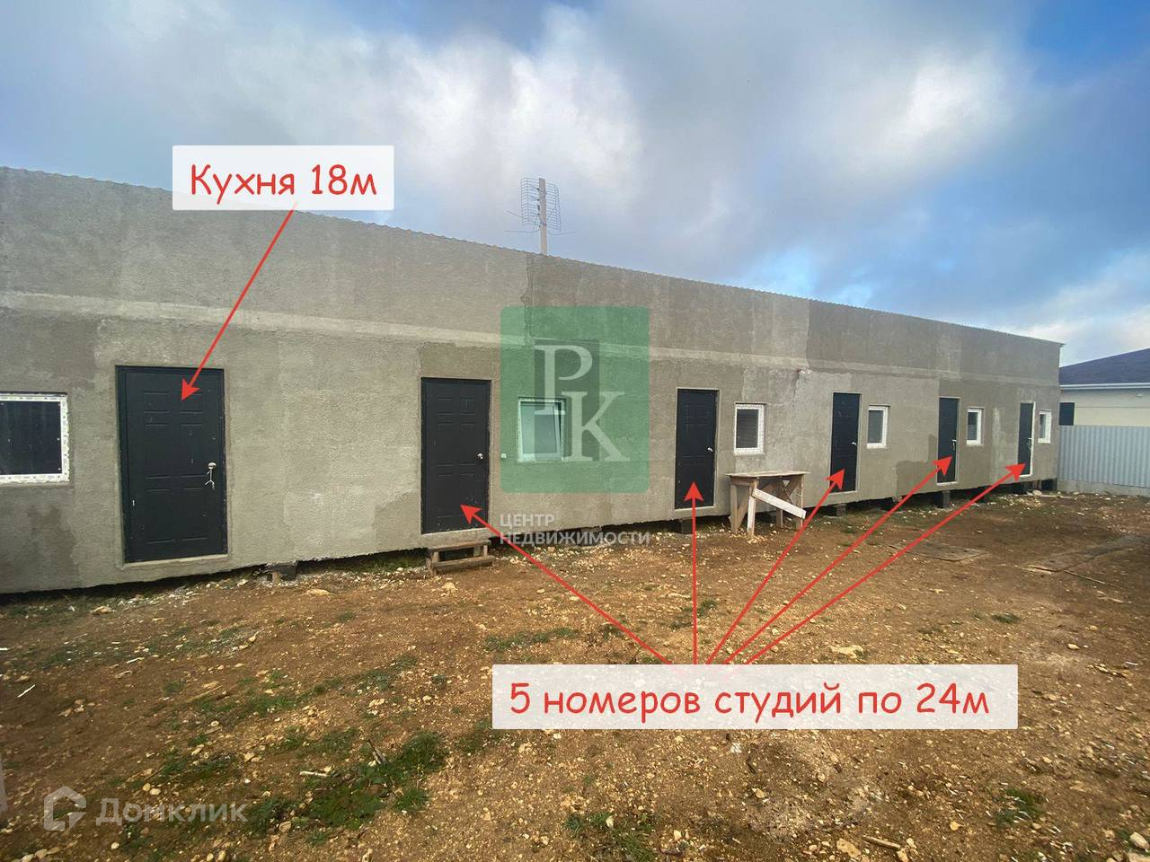 Здание 138 м2 на участке 4 сотки, одноэтажное. Расположен в г. Севастополь, Нахимовский район, СТ “Старт”. Разделено на 5 номеров с раздельными входами по 24м + кухня 18м.