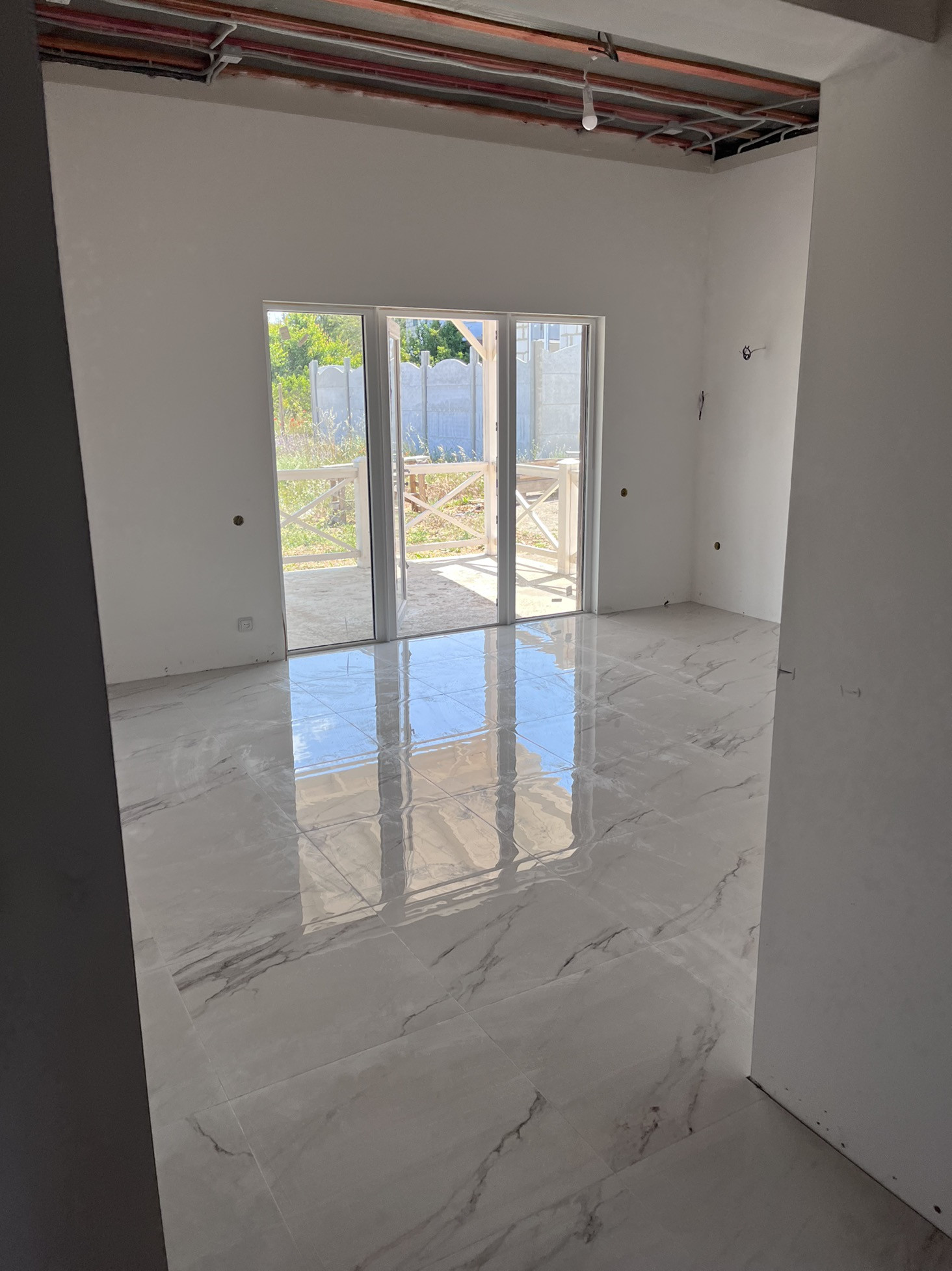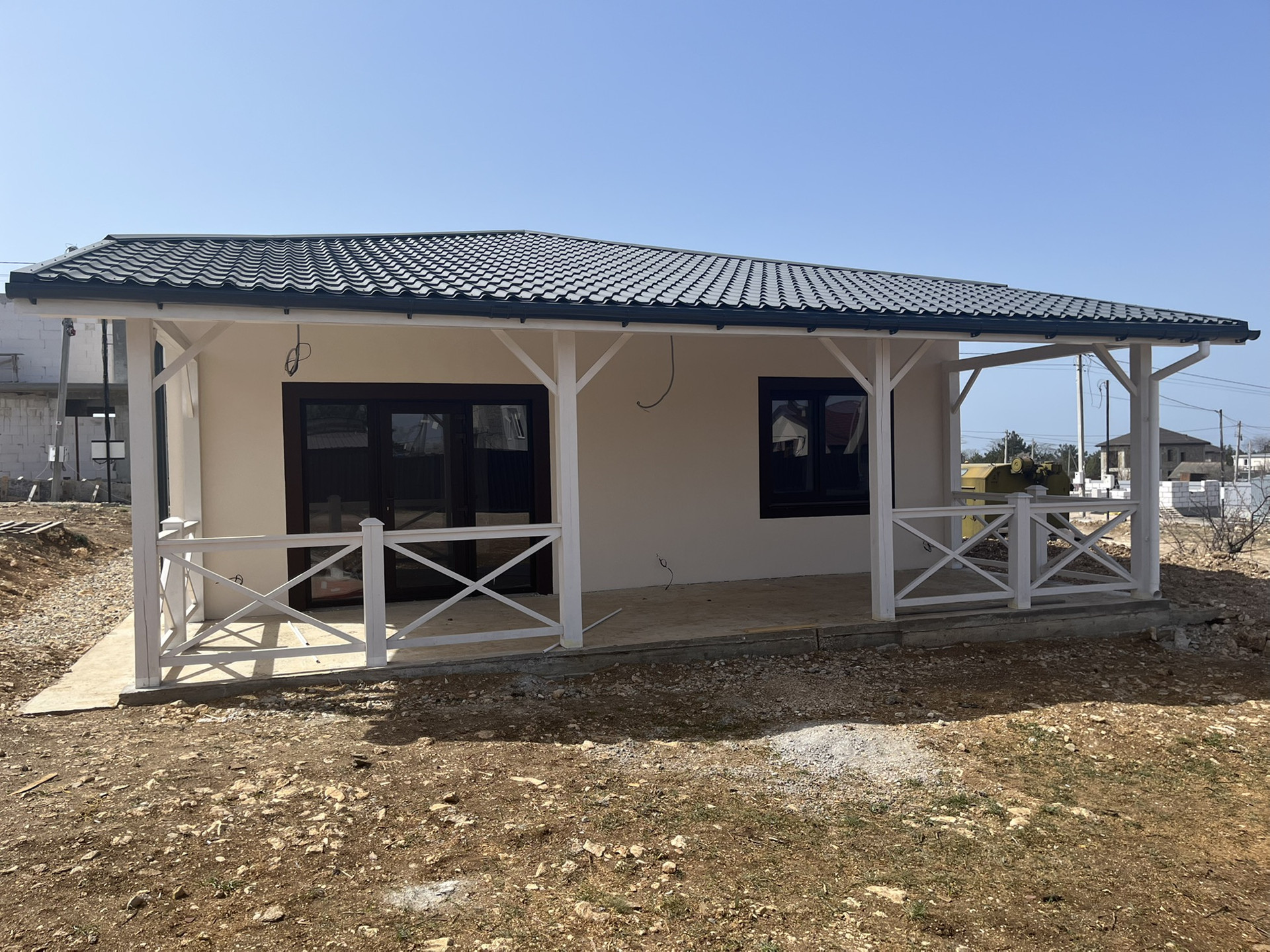 -Проведены розетки и освещение, на веранду и крыльцо.