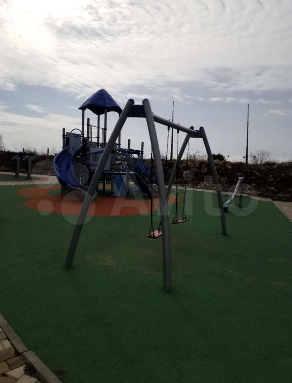 -рядом детская площадка, футбольное поле и зона тренажеров.
