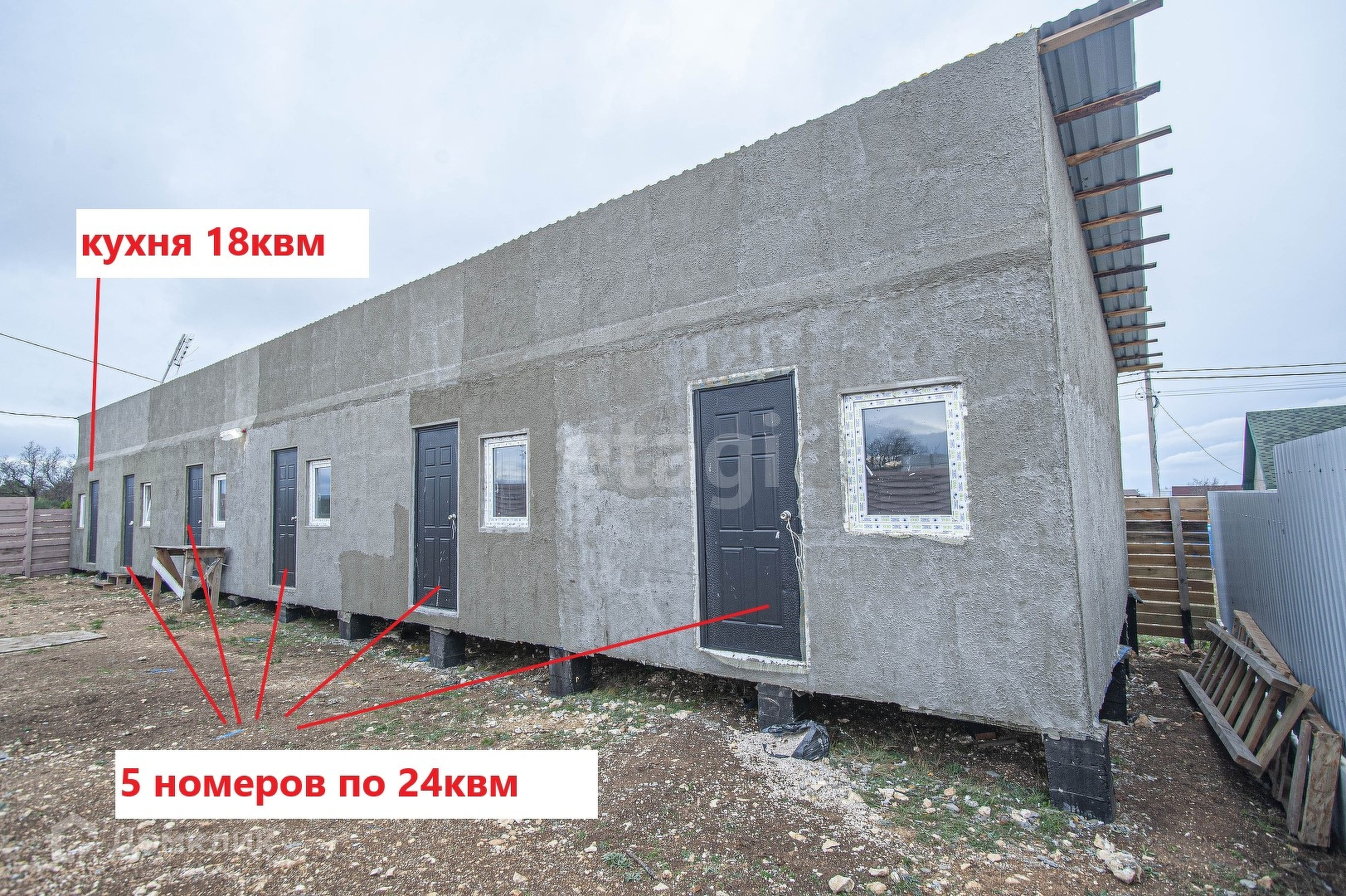 Гостевой дом на 5 комнат по 24 квм, 6-я комната - кухня, 18 квм.
