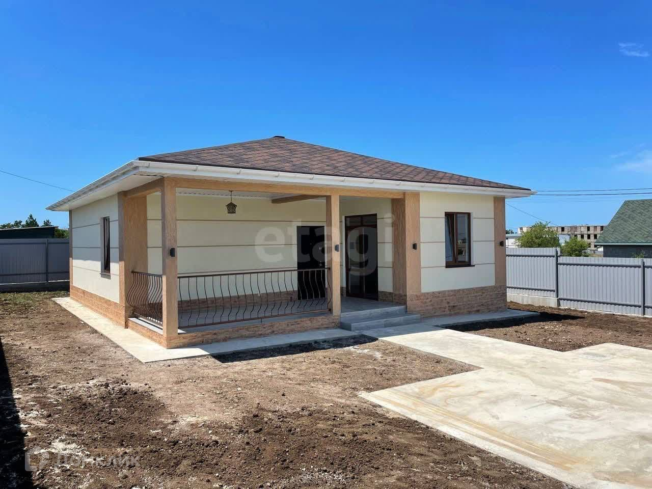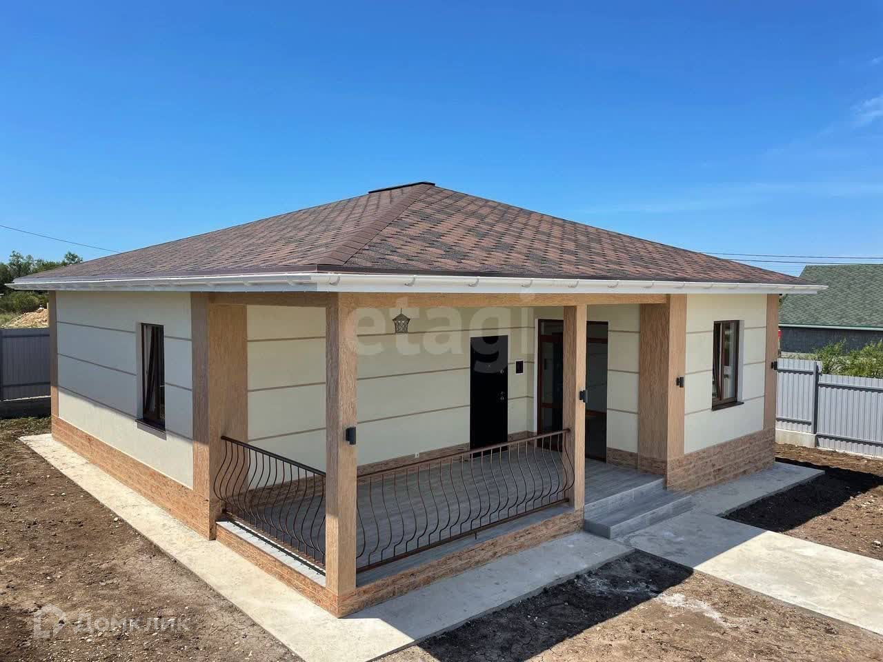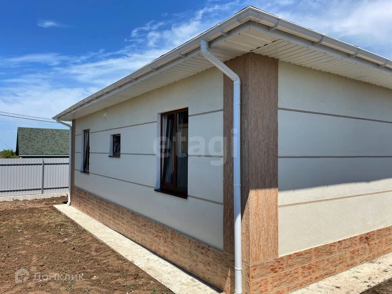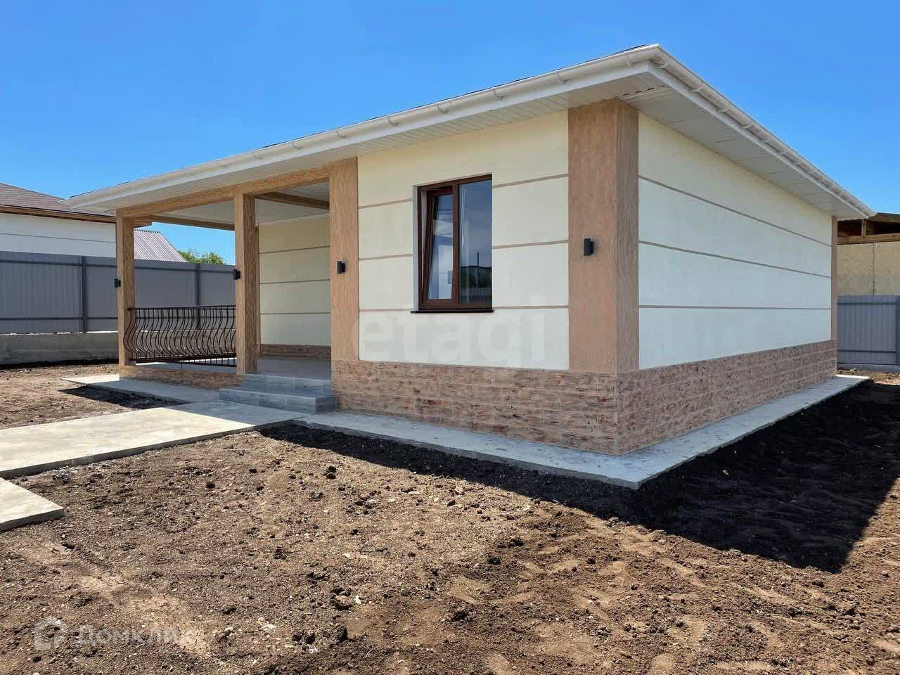 Дом готов для проживания, с наружней и внутренней отделкой. Площадь застройки - 105 кв.м., жилая - 75 кв.м.. В планировке дома предусмотрены три спальные комнаты по 12,25 кв.м., широкий коридор, кухня-гостиная с выходом на просторную террасу. Сан.узел совмещенный, установлена вся сан.техника - ванна, унитаз, раковина с тумбой, зеркало, электрический бойлер, стиральная машина. Все новое.