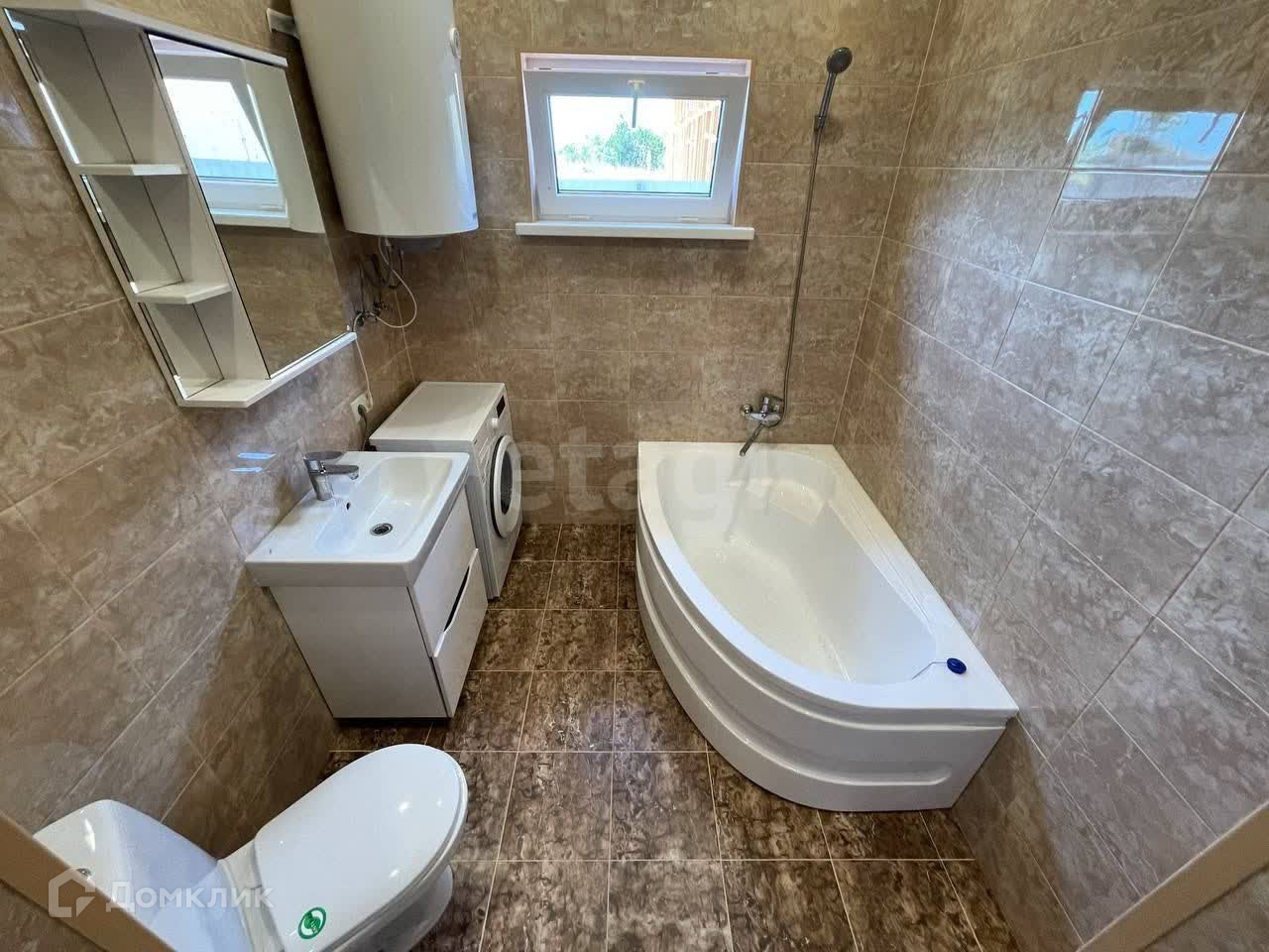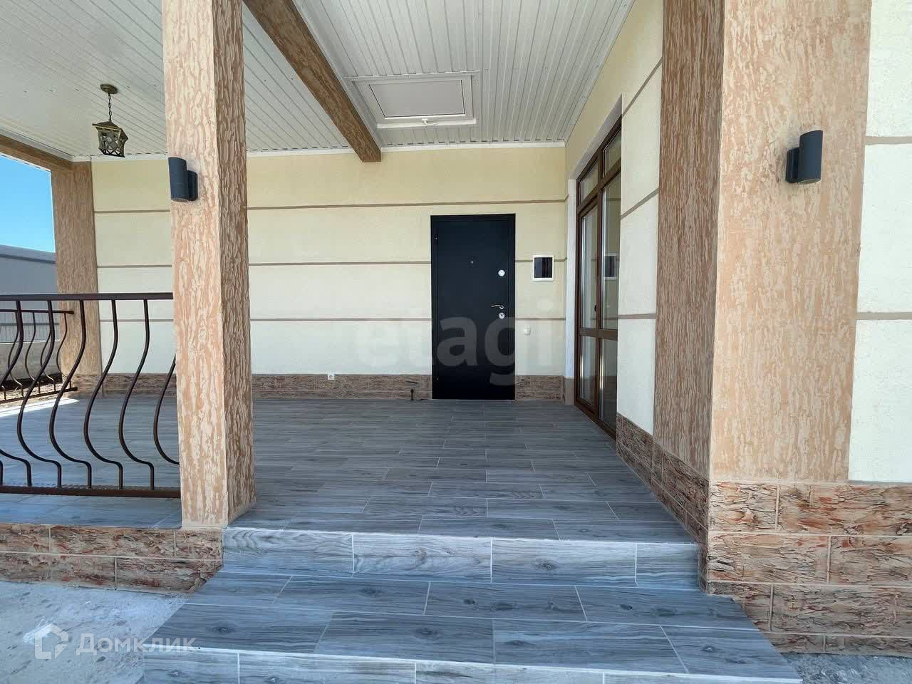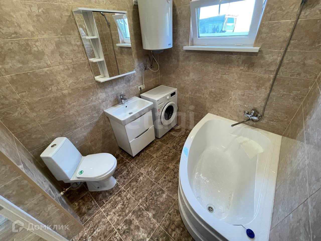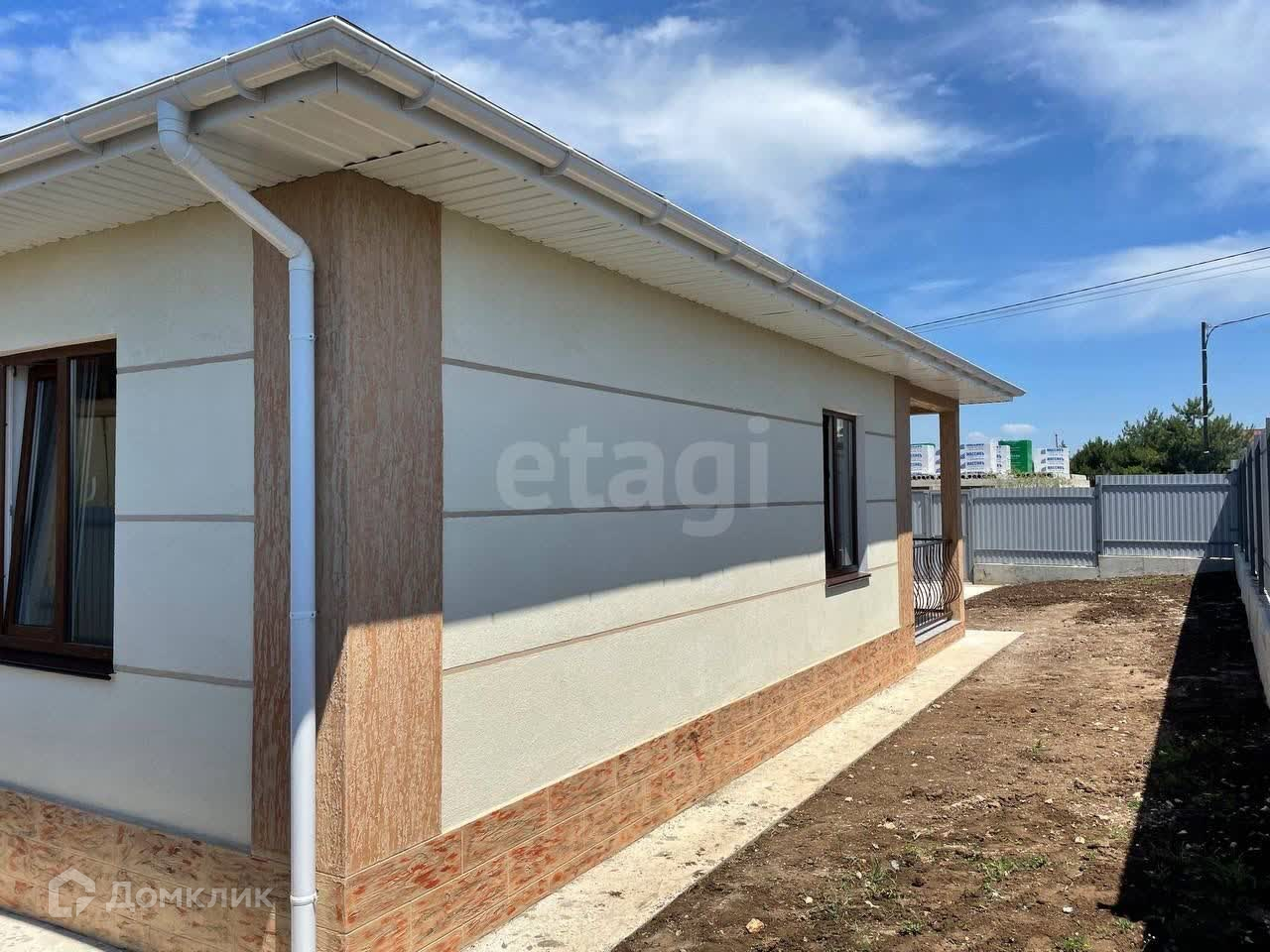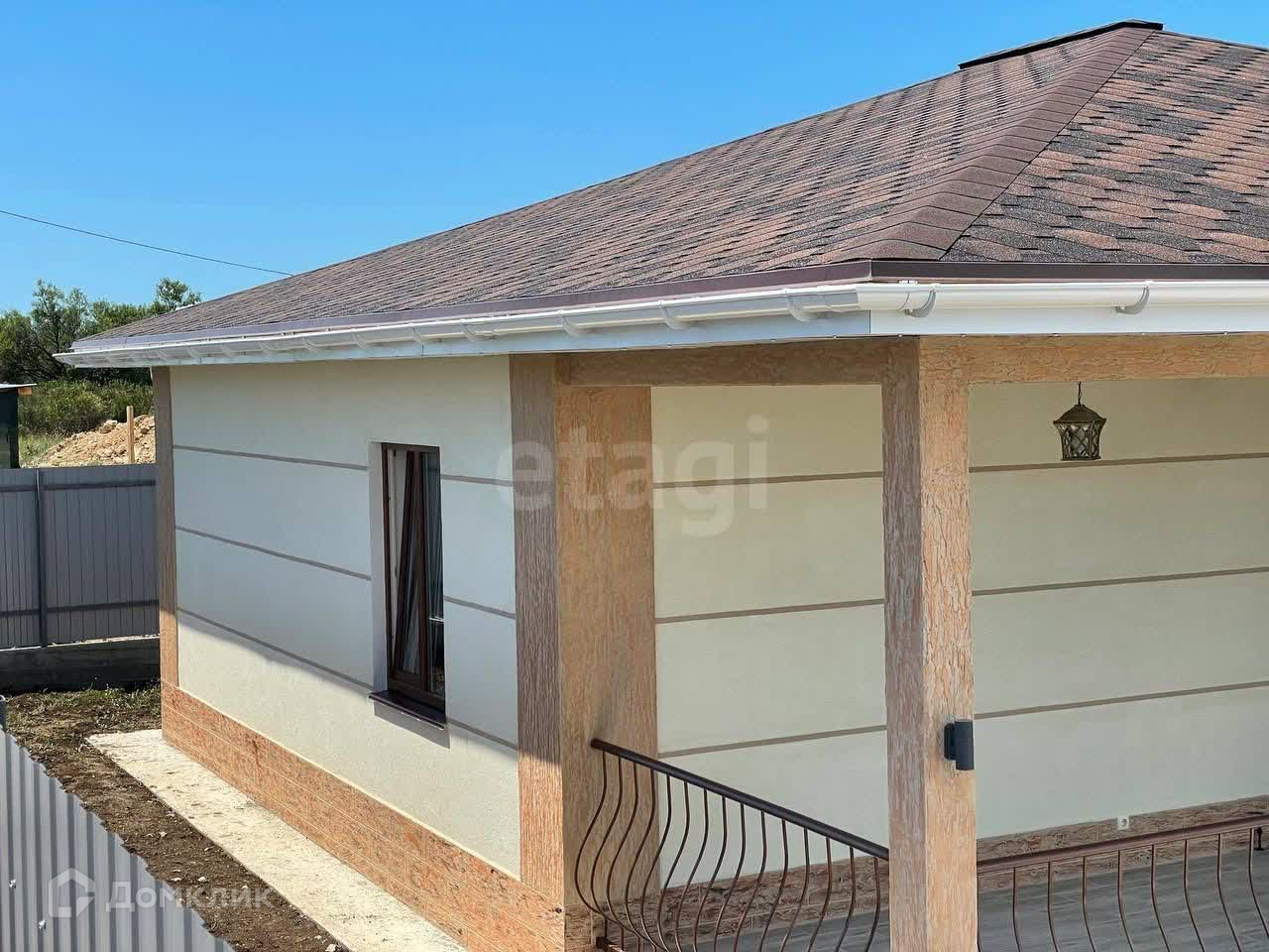 Дом готов для проживания, с наружней и внутренней отделкой. Площадь застройки - 105 кв.м., жилая - 75 кв.м.. В планировке дома предусмотрены три спальные комнаты по 12,25 кв.м., широкий коридор, кухня-гостиная с выходом на просторную террасу. Сан.узел совмещенный, установлена вся сан.техника - ванна, унитаз, раковина с тумбой, зеркало, электрический бойлер, стиральная машина. Все новое.