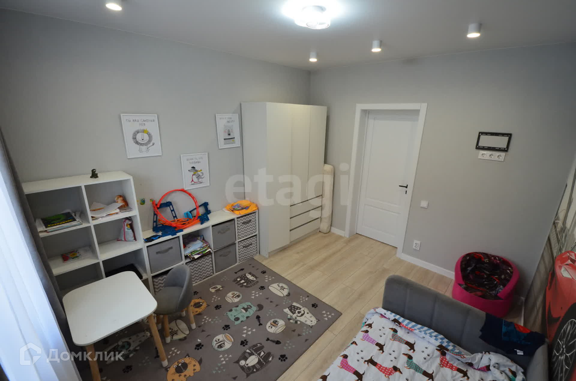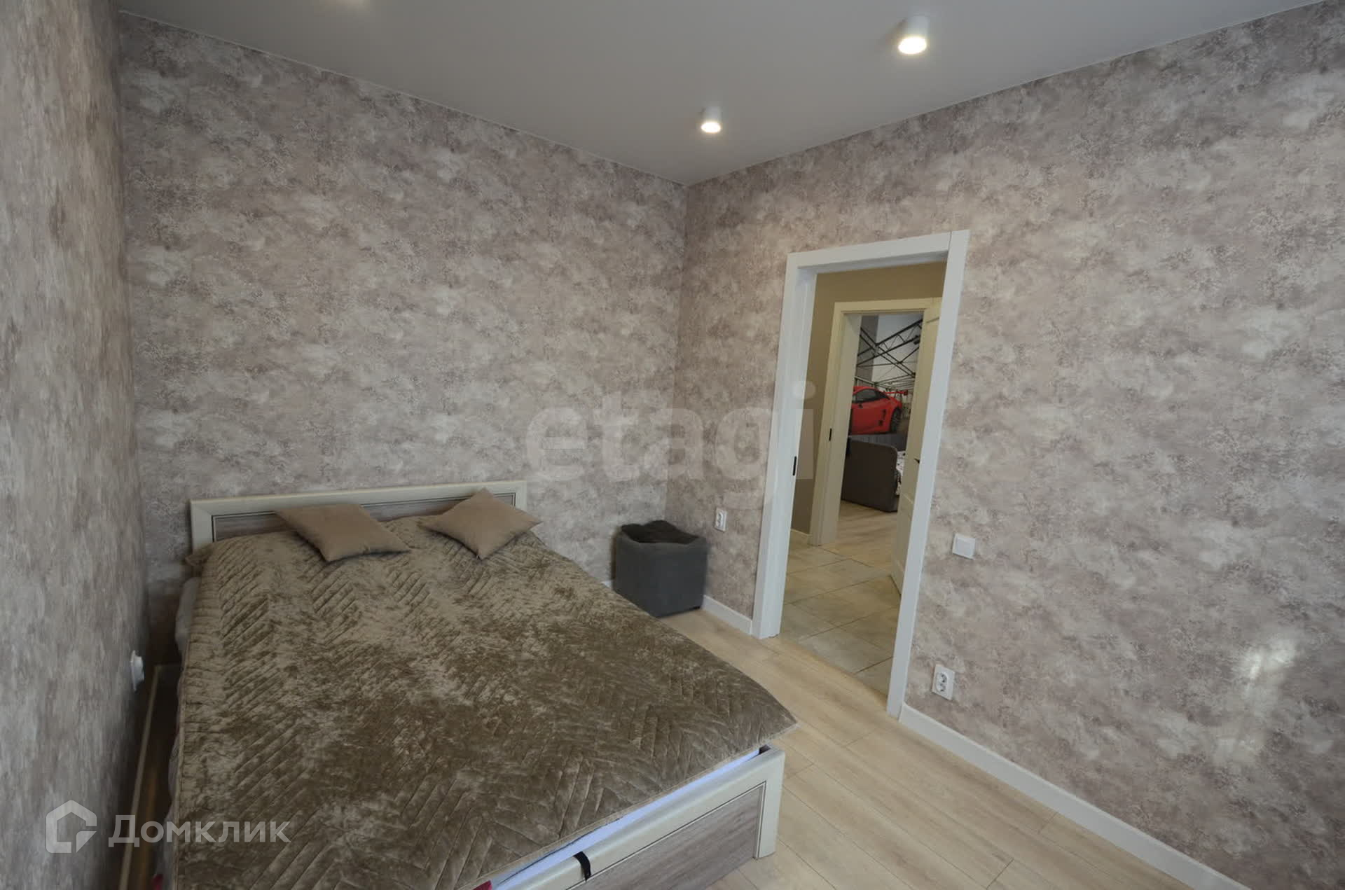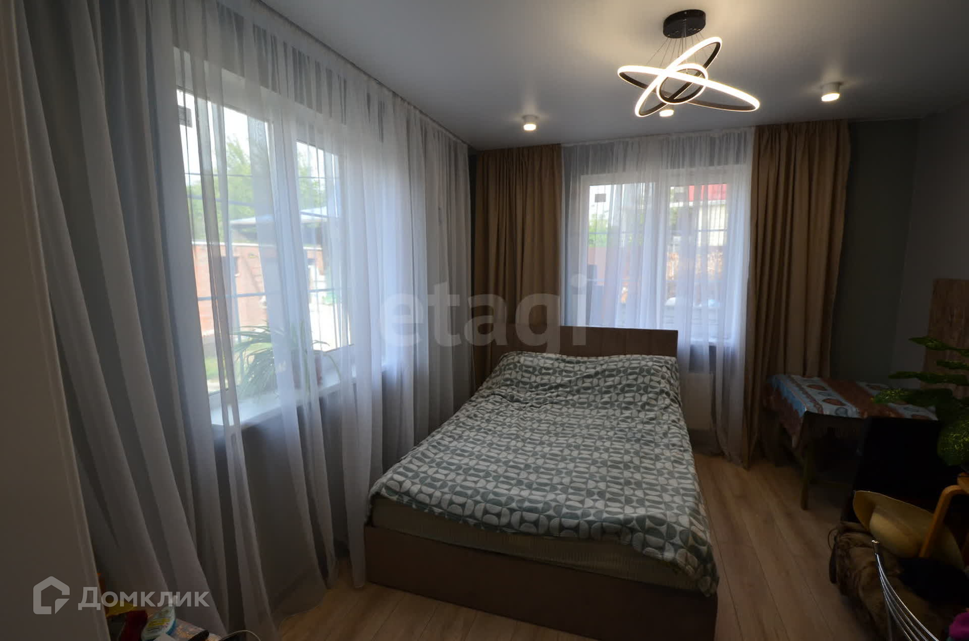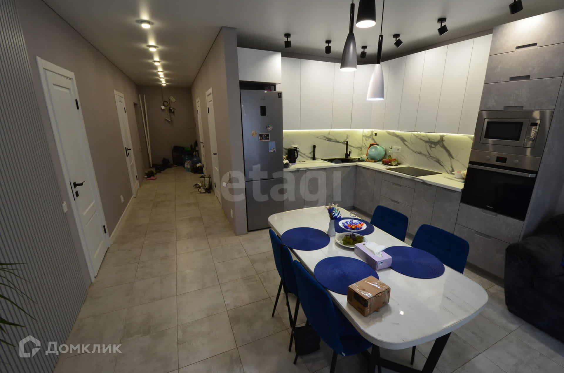 В доме выполнен качественный ремонт в светло-серых тонах. Установлены дорогие межкомнатные двери, поклеены обои, на полу керамическая плитка (в спальнях ламинат), множество точек подключения электроприборов, сделано зонированное освещение во всех комнатах.