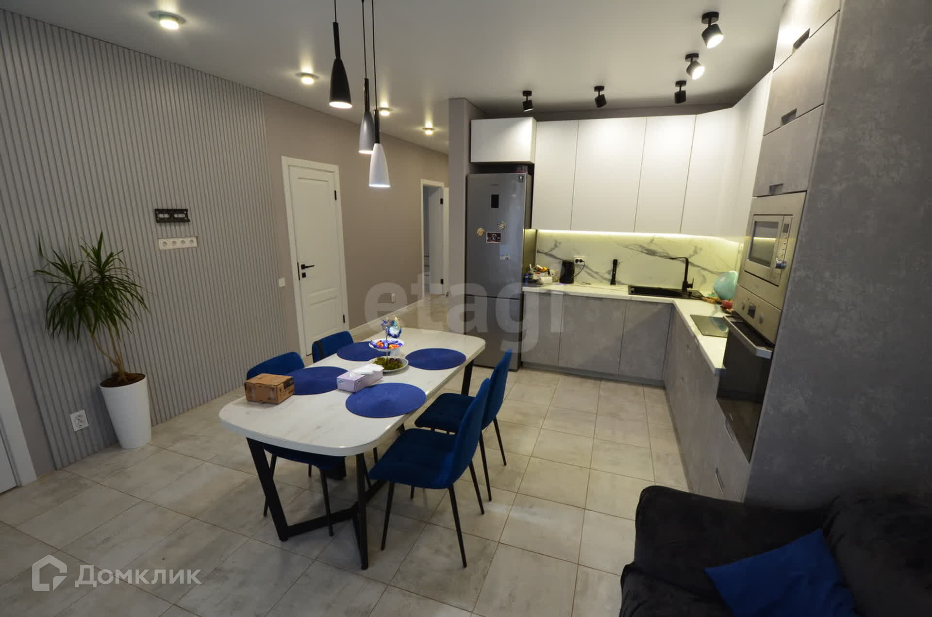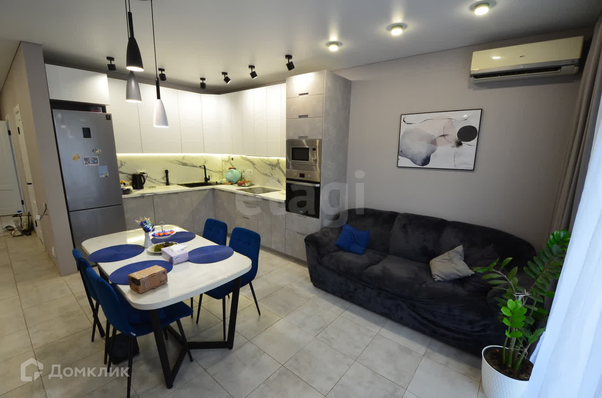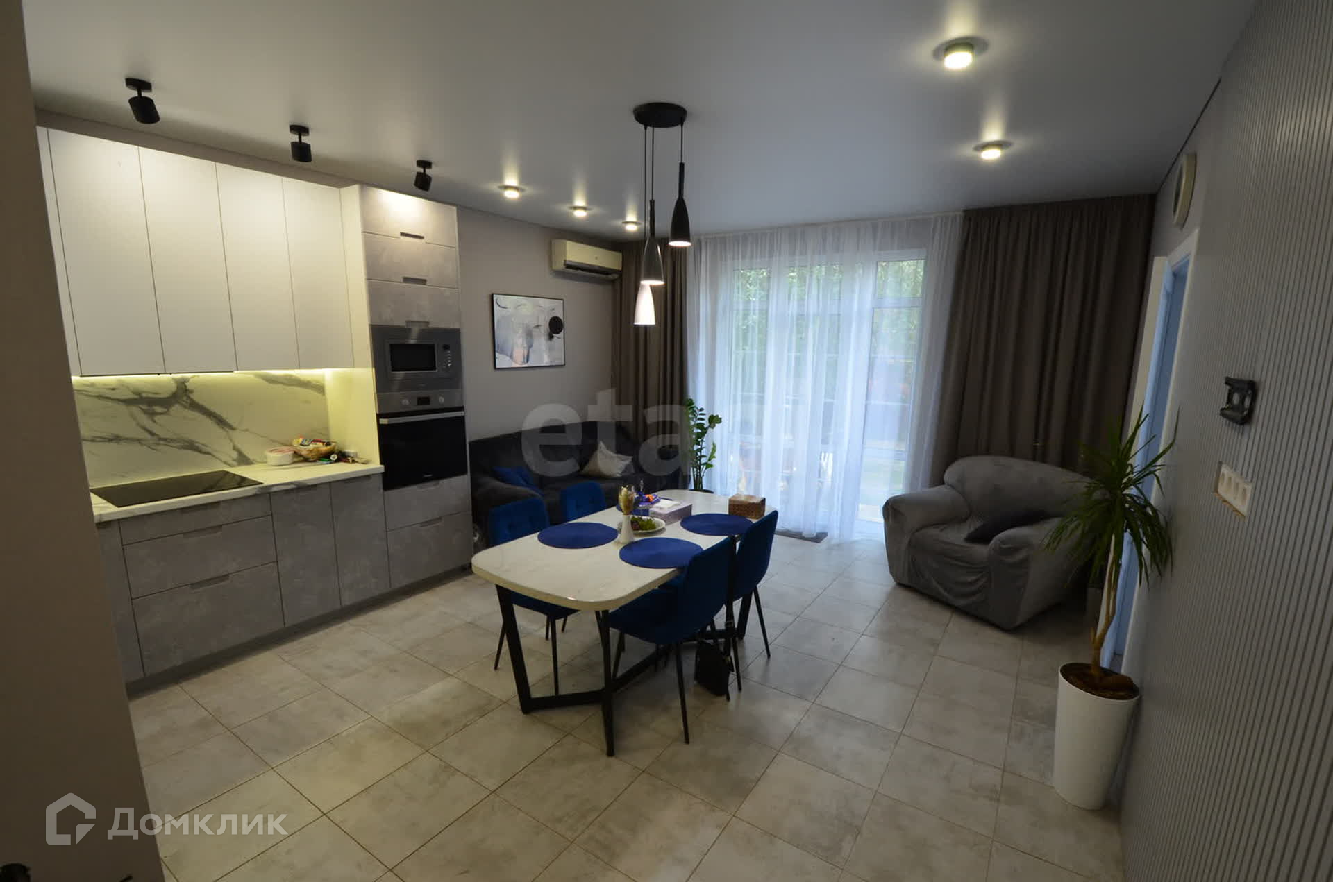 Дом полностью мебелирован. Установлена встроенная кухня со всей необходимой техникой: плита, духовой шкаф, посудомоечная машина, микроволновая печь, холодильник.