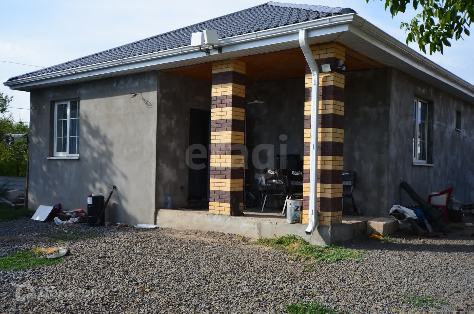 Дом построен из газоблока, утеплён пенополиэстирольными плитами и оштукатурен. Сделана хорошая тепло-ветрозащита кровли, металлочерепица тольщиной 0,50. Выполнено многослойное утепление пола по периметру всего дома, теплые гидрополы. Установлены качественные трёхкамерные энергосберегающие стеклопакеты Rehau.