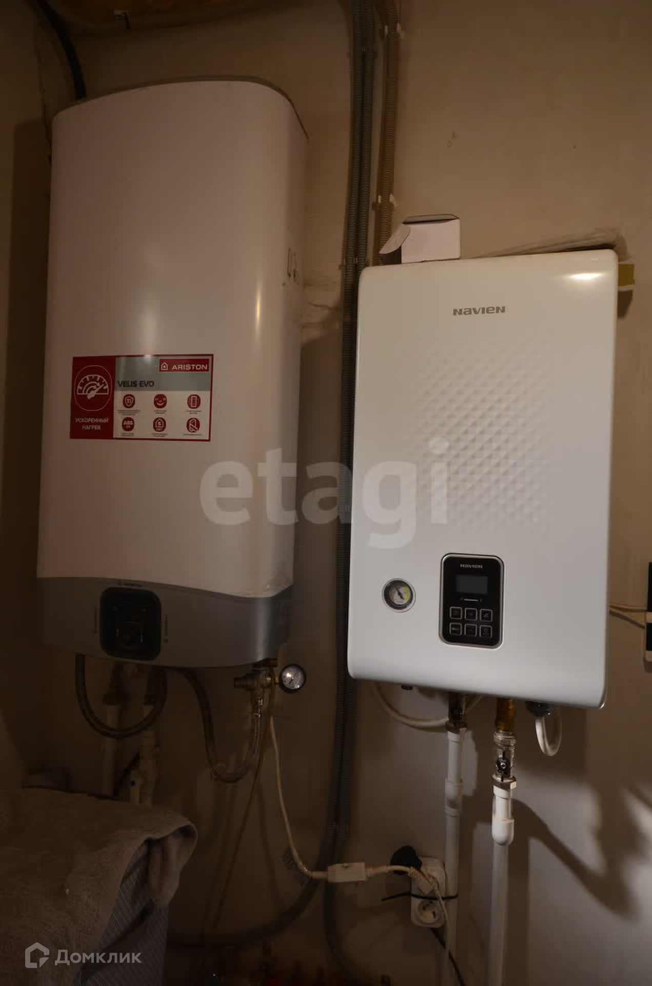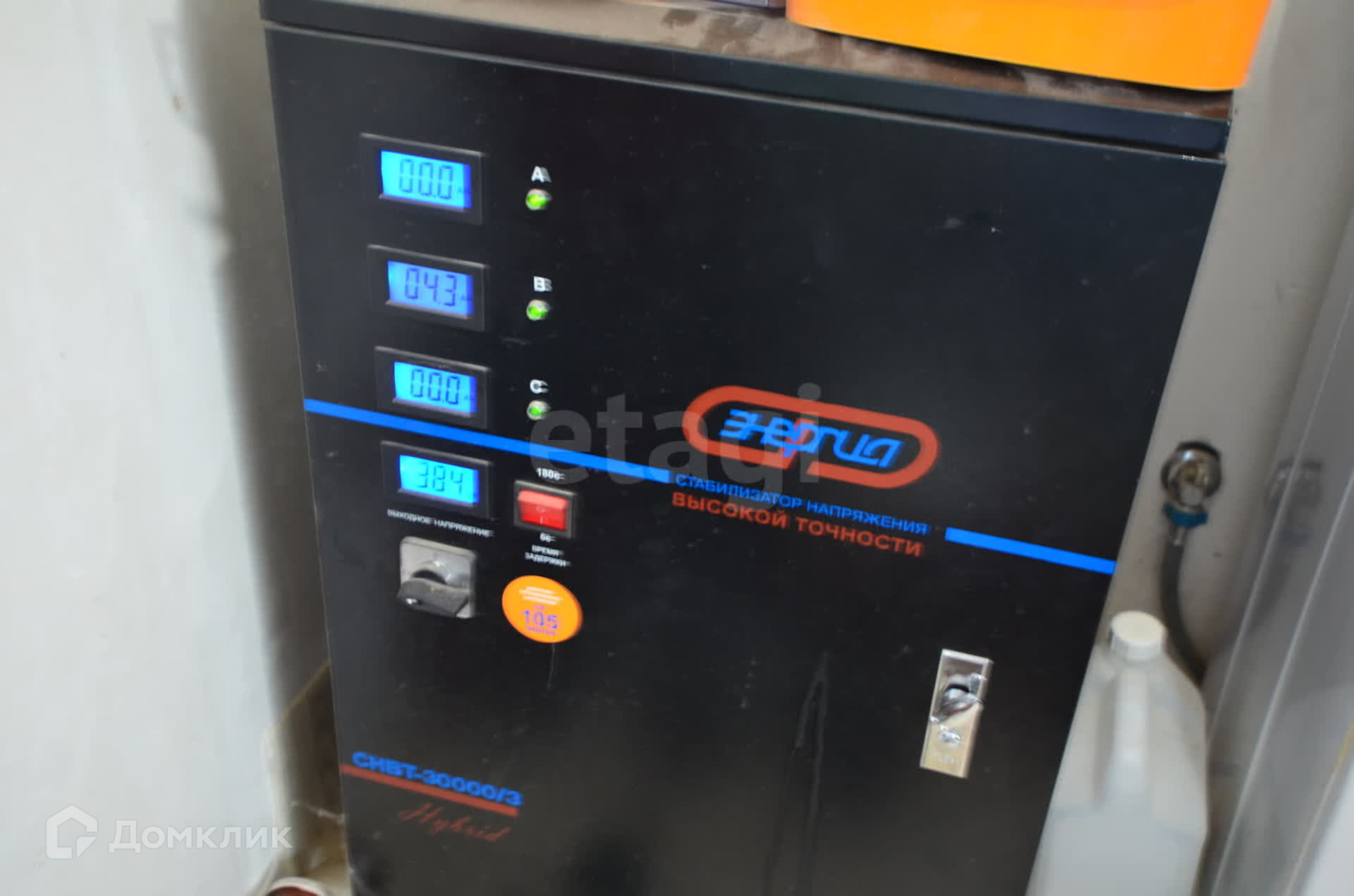 К дому идёт новая электрическая линия, заведено 3 фазы, за безопасность электроприборов отвечает стабилизатор высокой точности "Энергия", установлены водонагреватель Ariston и электрокотёл "Navien".
