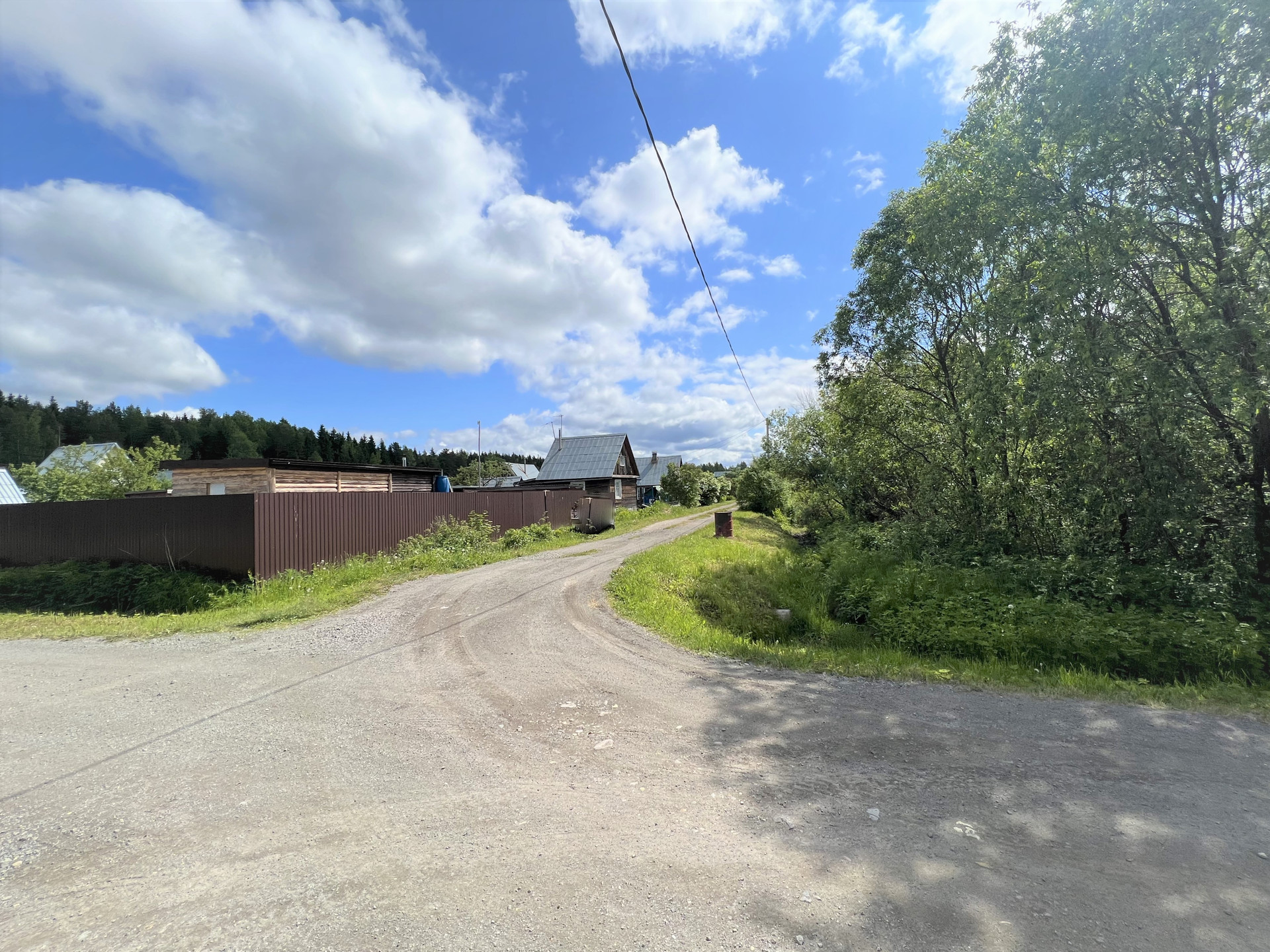 Дорога просёлочная до участка. В 5 минутах езды есть магазин с продуктами и промтоварами.