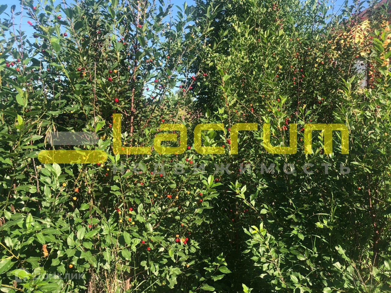 На участке плодородная почва растет великолепная вишня.