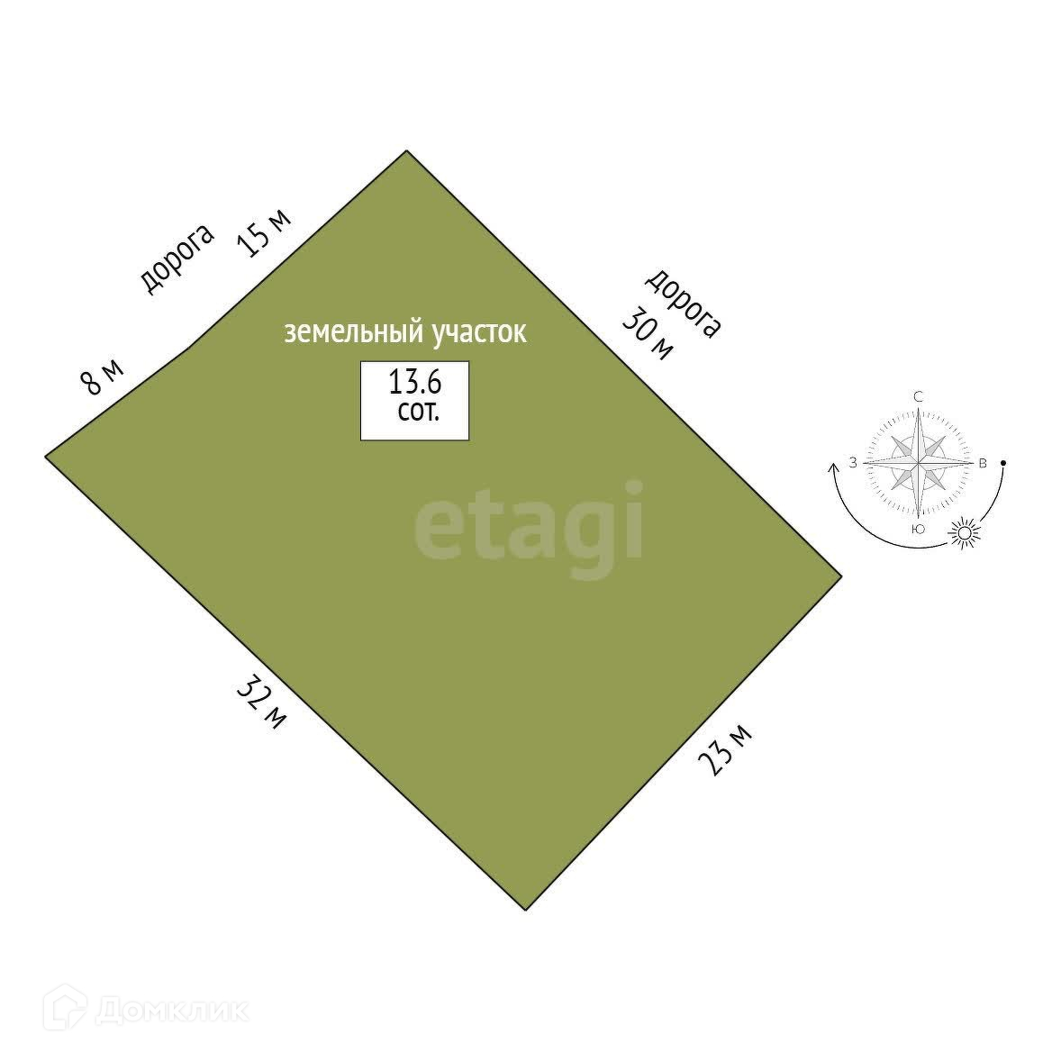 Площадь участка 13.6 сот.