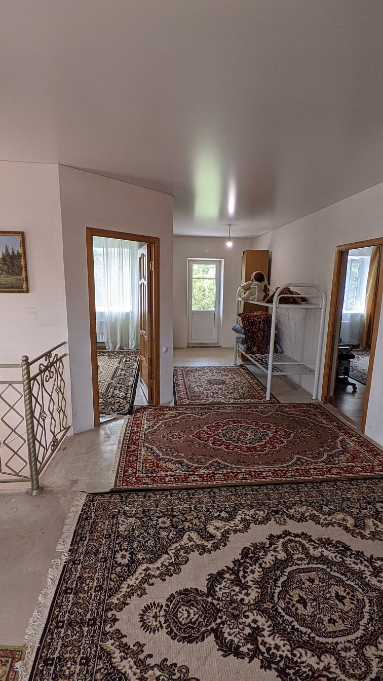 Второй этаж полностью с ремонтом и готов к комфортному проживанию. Имеются два балкона. Перед домом имеется участок 5 сот. На нем расположен капитальный уличный туалет и душ.