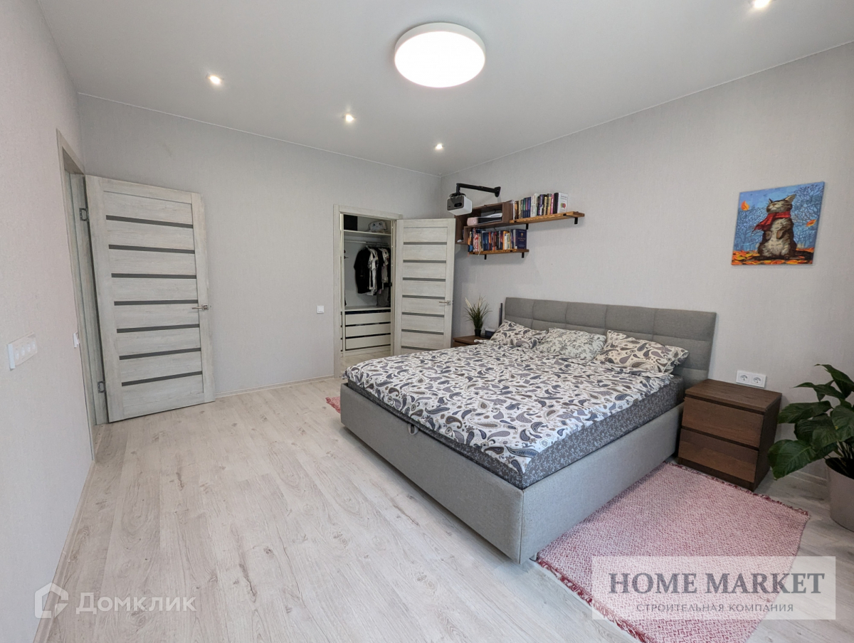 на 2 этаже: Мастер-спальня с большой кроватью, гардеробной и видом на лес; гостевая спальня или детская комната; комната с балконом; санузел с угловой ванной и мебелью, теплый пол; дополнительная кладовая.