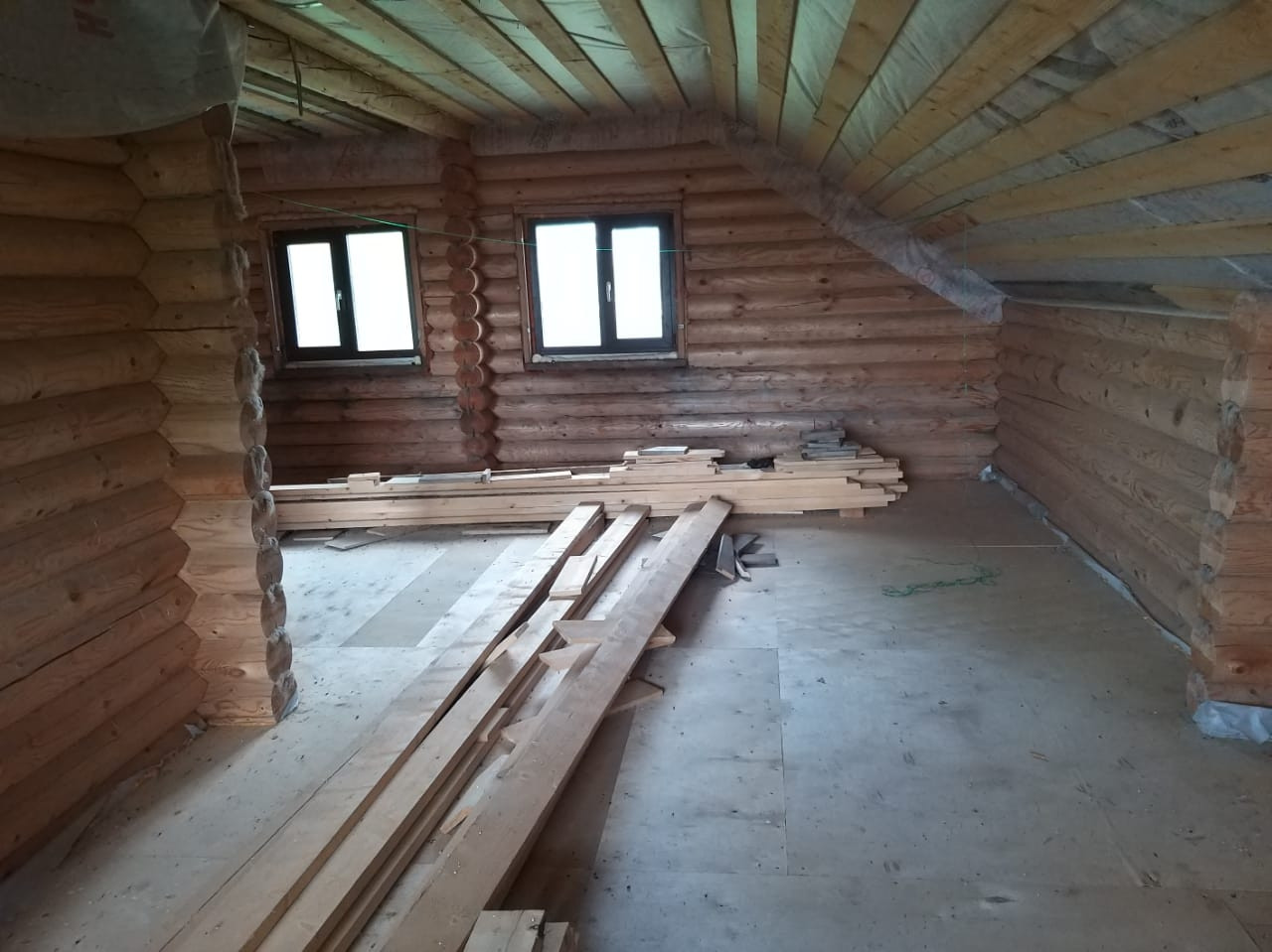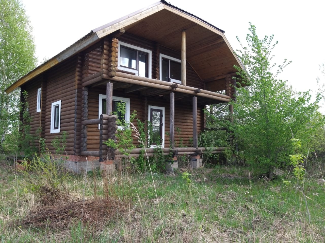 Деревянный дом с мансардным этажом из оцилиндрованного бревна