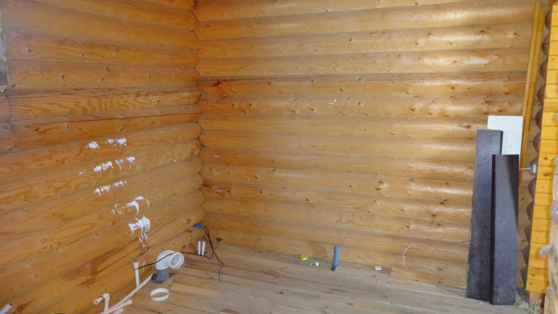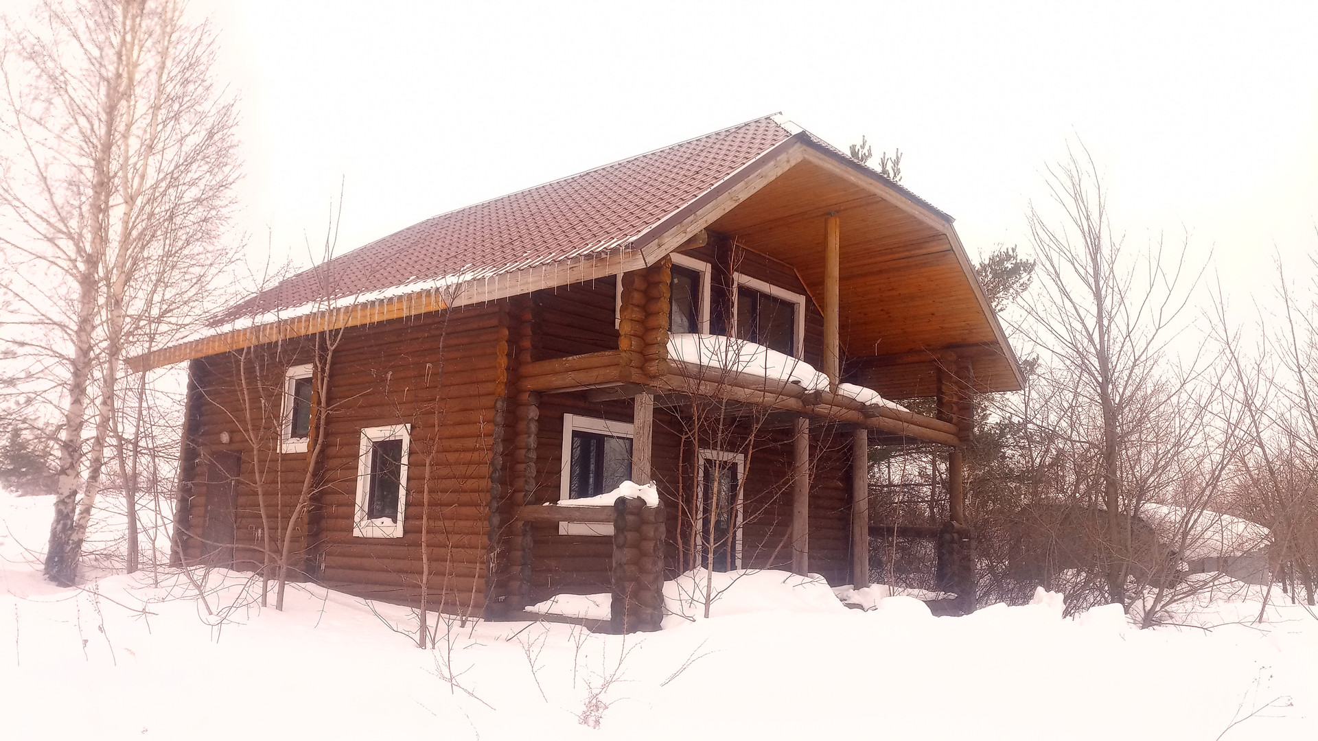 Материал постройки – калиброванное бревно, крыша - металлочерепица, окна пластиковые, фундамент ленточный, выгребная яма 3 кольца.