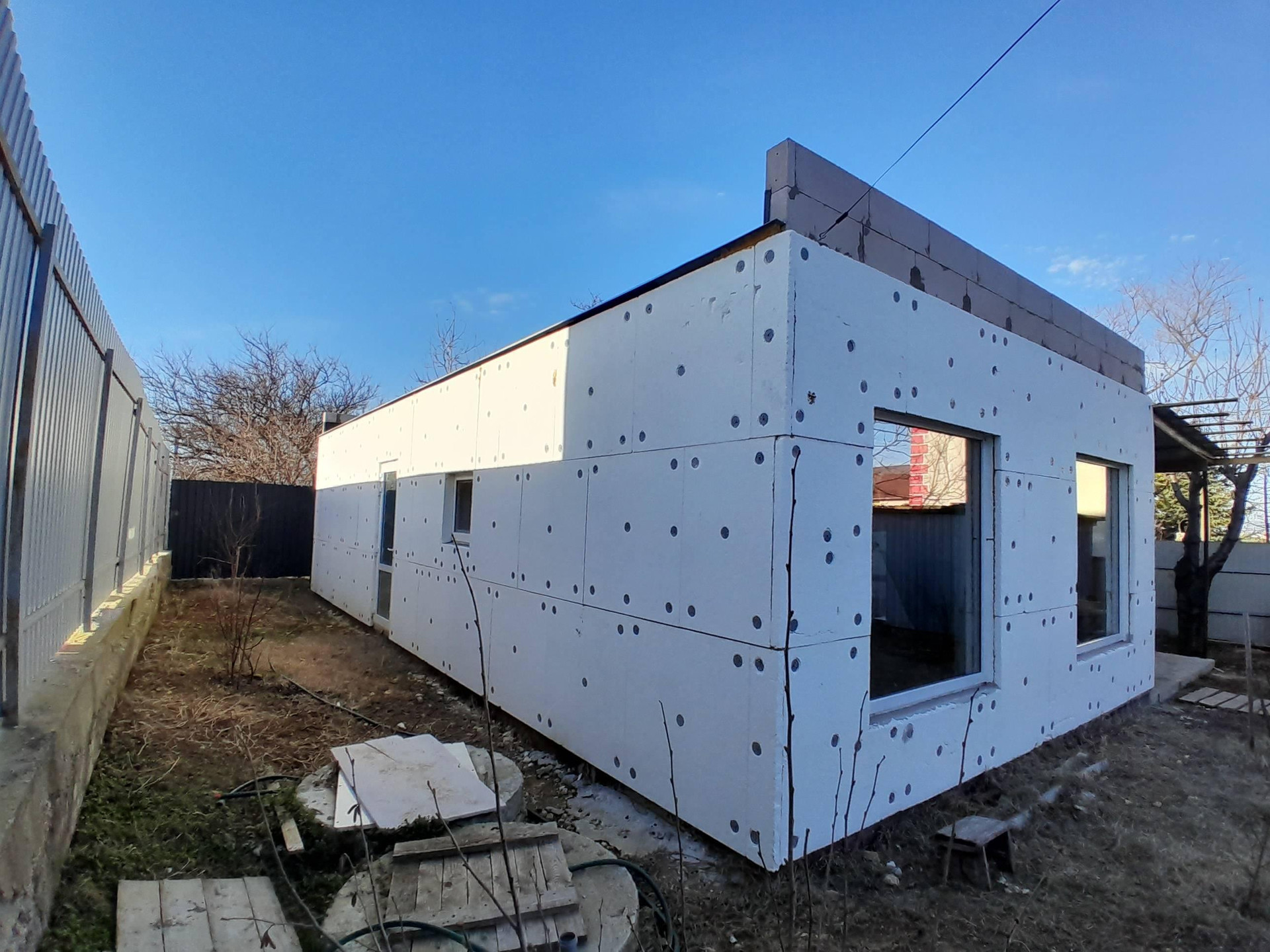 Дом: новый 2021 года, введен в эксплуатацию в 2022 году, жилой, площадью 95,5 кв.м., очень КАЧЕСТВЕННОЙ постройки, строили для себя. Дом в стиле "хайтек", построен из краснодарских газоблоков, утеплен снаружи пенополистиролом, толщиной 5 см, фундамент, в том числе под террасой, за счет чего можно увеличить жилую площадь или сделать веранду - столовую. Окна большие, качественные стеклопакеты, входные двери металлопластиковые, основной вход оборудован двумя широкими дверьми, дополнительный вход в бойлерную одной дверью. Дом просторный и светлый, при входе большая гостиная, совмещенная с кухней + 3 комнаты, бойлерная с доп. входом в дом, санузел с окном. Потолки высокие 2,9 м, крыша и потолки: монолитные перекрытия фирмы МАРКО - (есть официальный сайт). Электрика разведена по всему дому, интернет заведен в дом, все работает, водопровод и канализация также разведены по дому, горячая вода от бойлера, все подключено и работает, включая стиральную машину. Отопление предполагается электрическое по сниженному тарифу. В настоящее время (январь) весь дом отапливается одним электрическим конвектором и при этом в нём реально тепло за счет отличного наружного утепления и качественной крыши, убедитесь сами при просмотре.