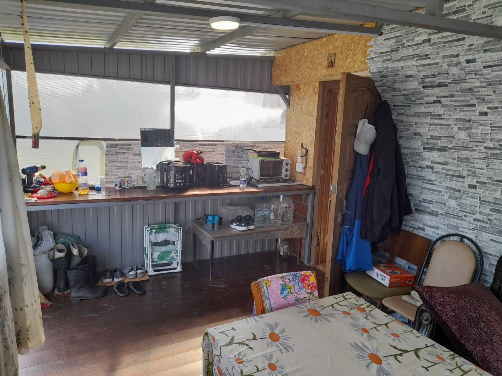 Беседка с летней кухней. В доме камин.