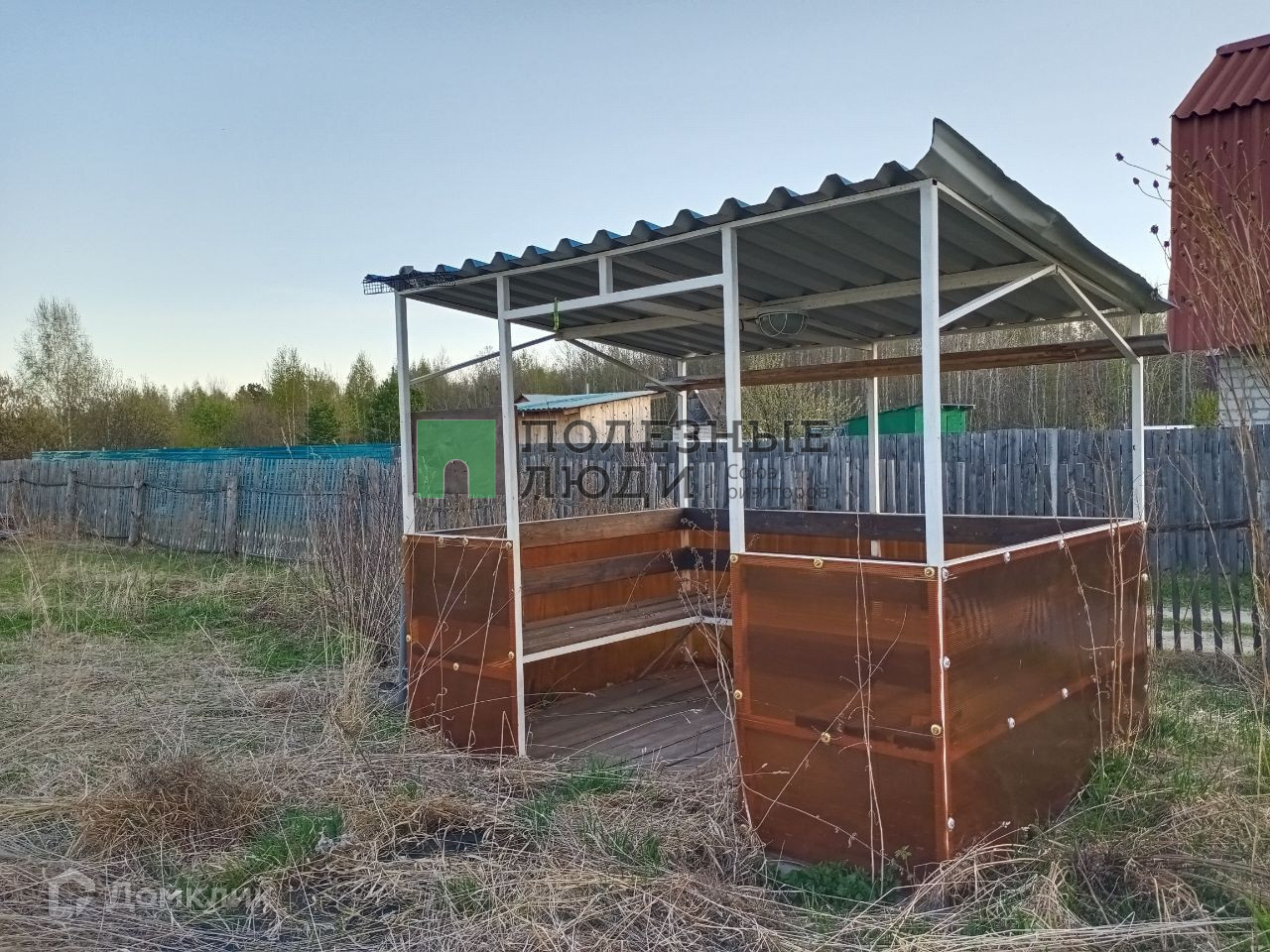 На участке домик, беседка, туалет.