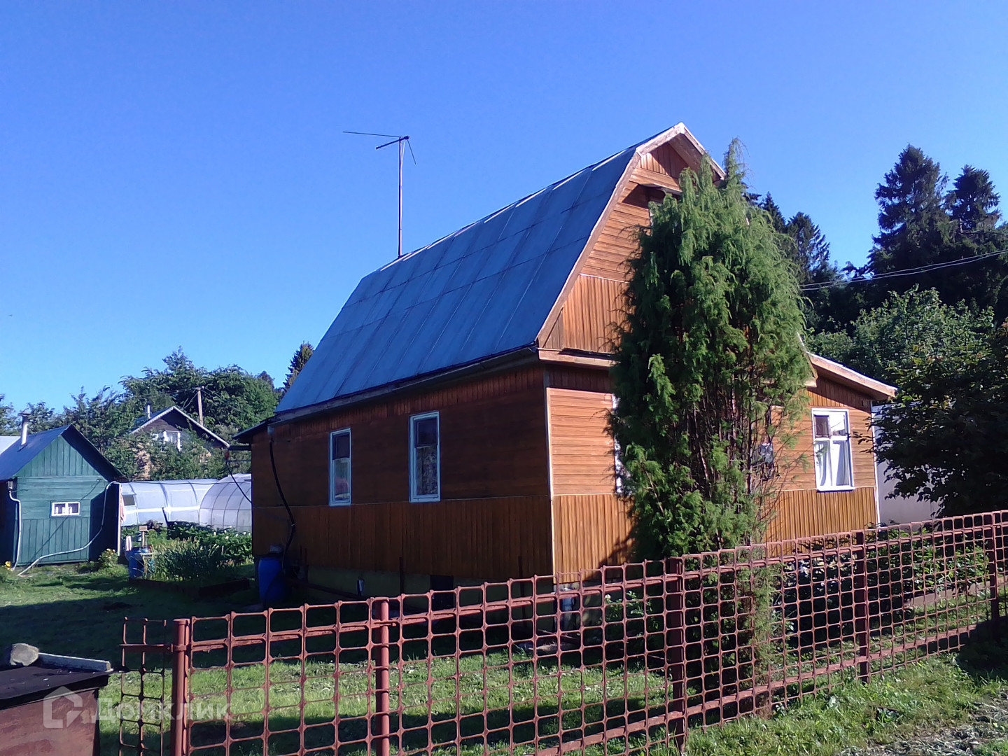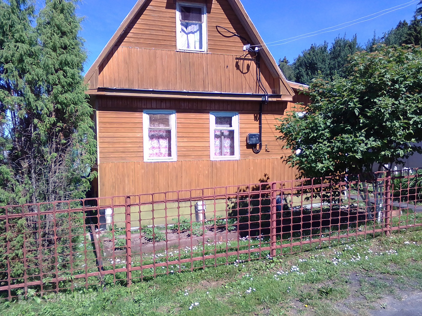 Арт. 43207690 В продаже хороший ухоженный дом СНП « Красная Звезда». Расположен  в 15 км  от города.  Дом 40 м² (две жилые комнаты: на первом этаже и в мансарде) с пристроенными верандой и хоз. помещением. Год постройки дома 1993, гараж 6х3 м.  Баня 4,5х2,5 м, кессон, туалет отдельно от дома. Фундамент дома на сваях. Дом каркасный с утеплителем. Внешние стены дома и внутренние жилых комнат, включая потолки, отделаны деревянной вагонкой.  Отопление жилых комнат - печное. Площадь основного участка 5 соток, границы определены.  Участок ровный, сухой,  разработан,  используется для выращивания овощей (установлены две теплицы). Высажены кусты черной смородины, яблони.